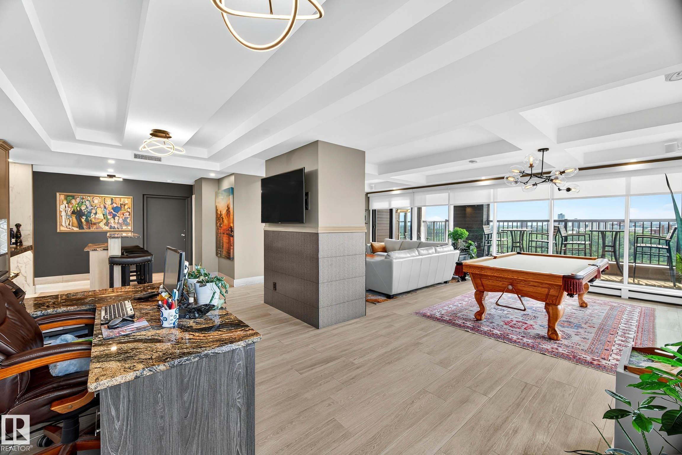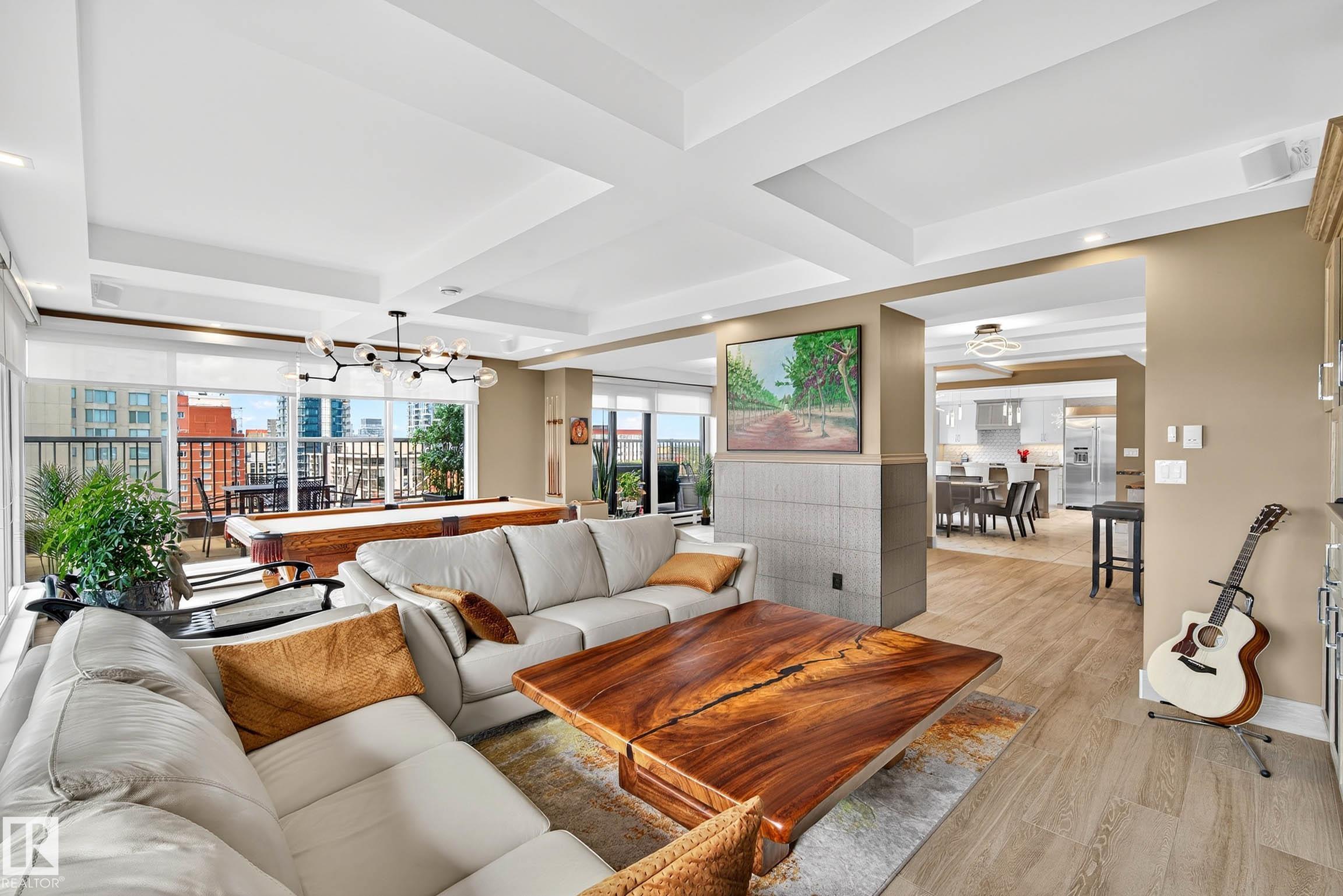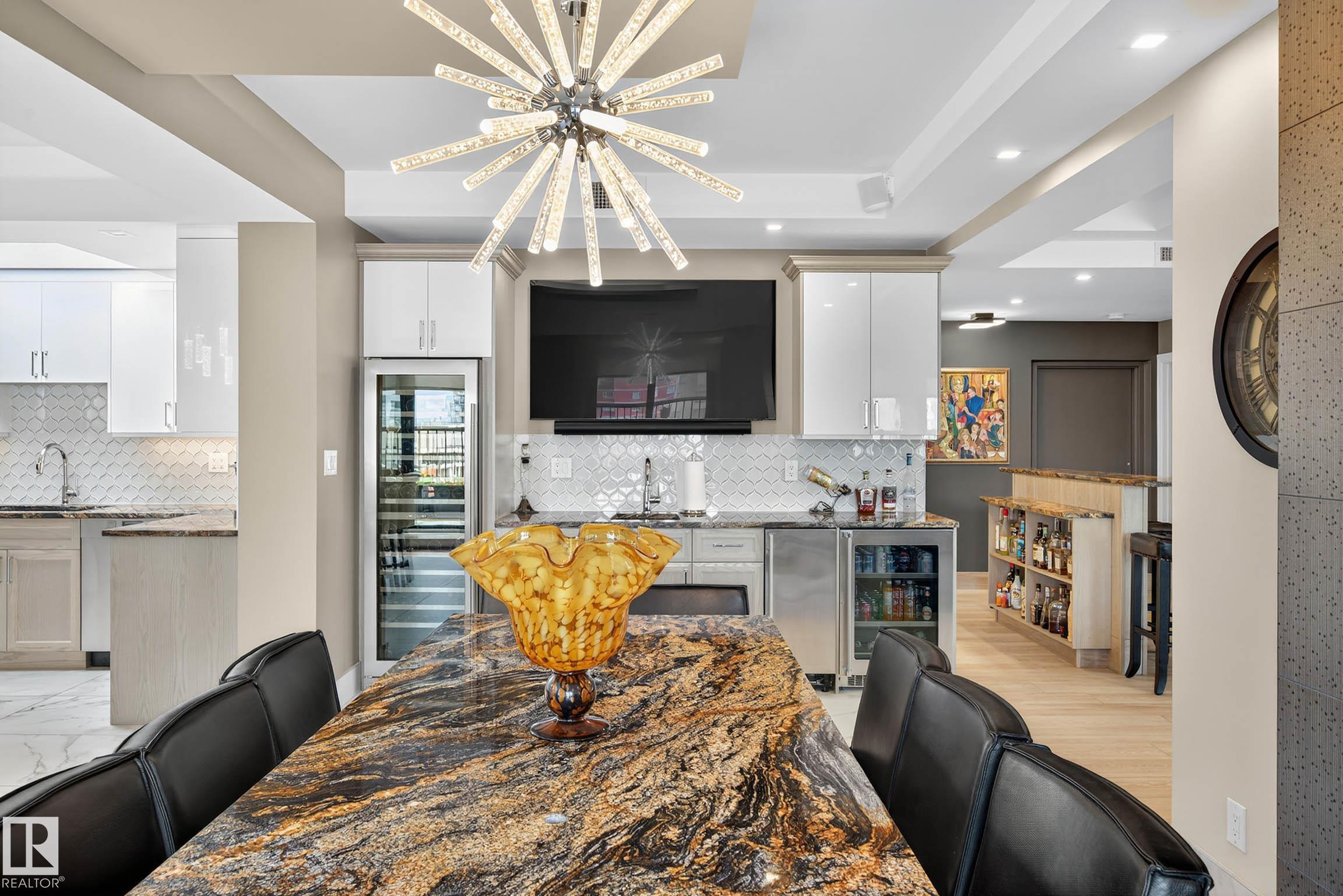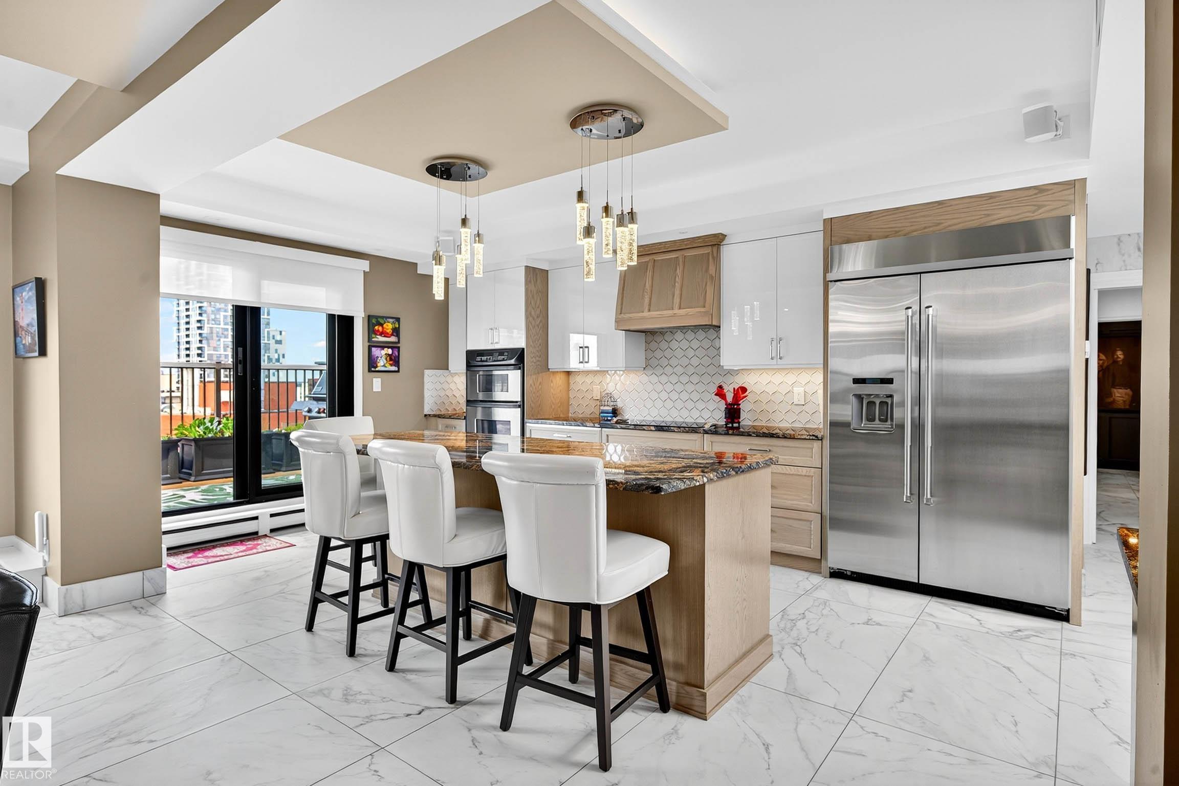 Breathtaking Penthouse ? Fully Redesigned ?Impeccable attention to detail ? Luxury, design & location converge in this spectacular 3039 sq ft, 3 bdrm, 4 bath residence overlooking Edmonton?s stunning River Valley. With no expense spared, this one-of-a-kind residence showcases premium finishes, new mechanical systems, sound proofing and the latest in modern design innovation. Your private elevator opens to a floor plan bathed in natural light, offering floor-to-ceiling views of the river valley, golf course, city skyline, and beyond. The chef-inspired kitchen is a showstopper w/quartz countertops, massive centre Island, custom cabinetry & high-end integrated appliances. Each room flows seamlessly onto a private wrap-around terrace ?ideal for entertaining or quiet reflection.The primary suite & second bedroom (each with city views) have ensuites w/custom WI closets. Every inch of this home has been thoughtfully curated with premium materials, timeless elegance, and smart functionality + 3 Parking Stalls.
