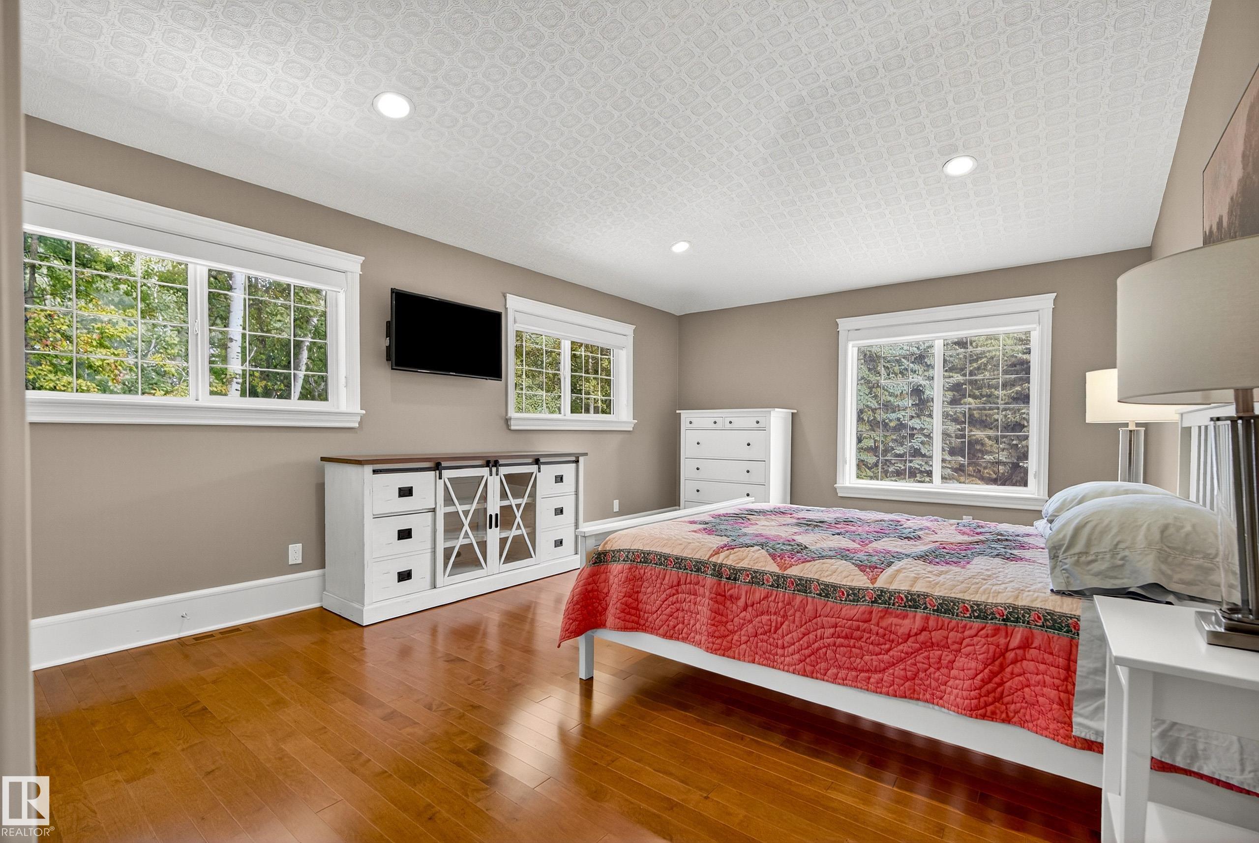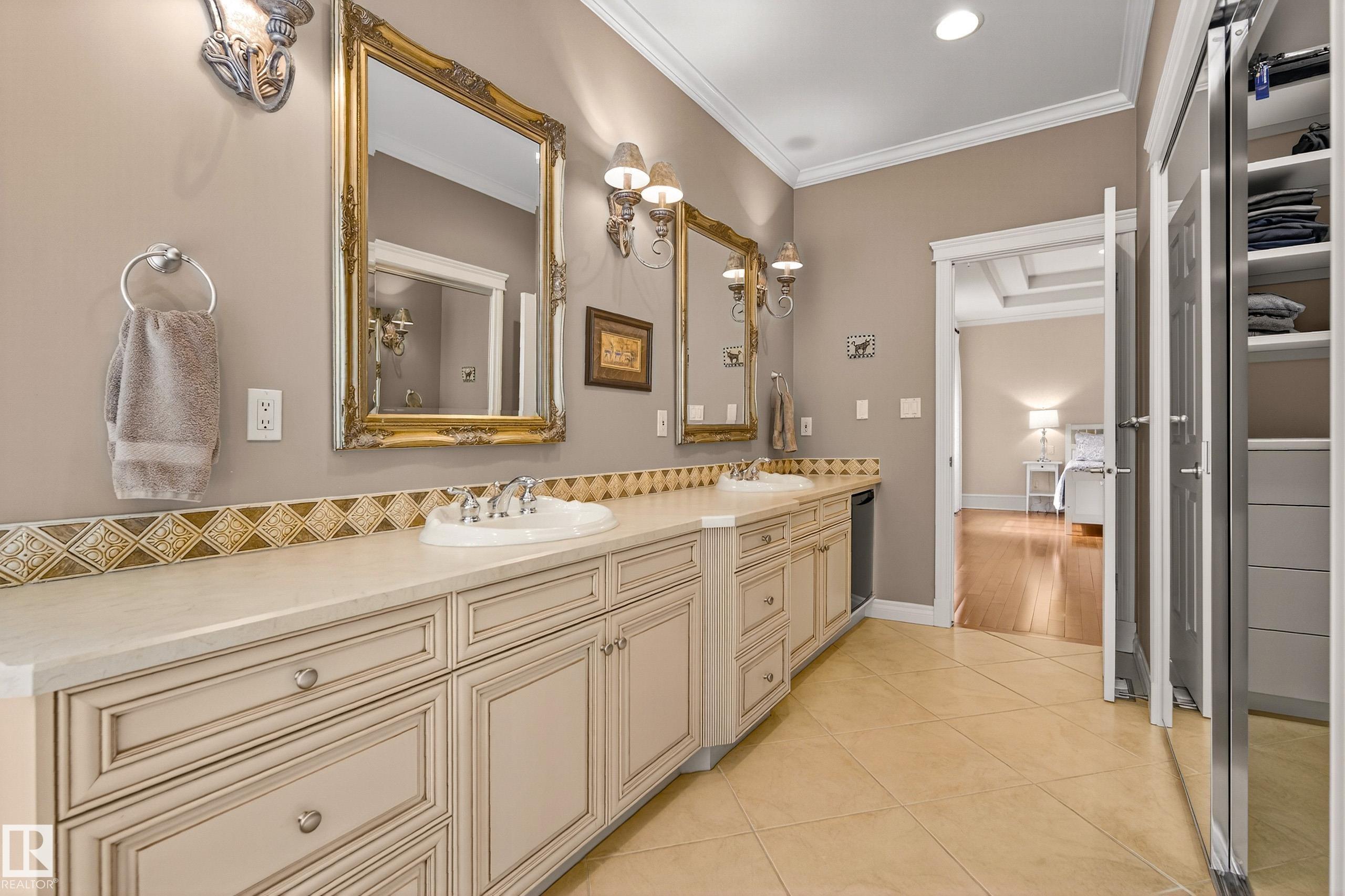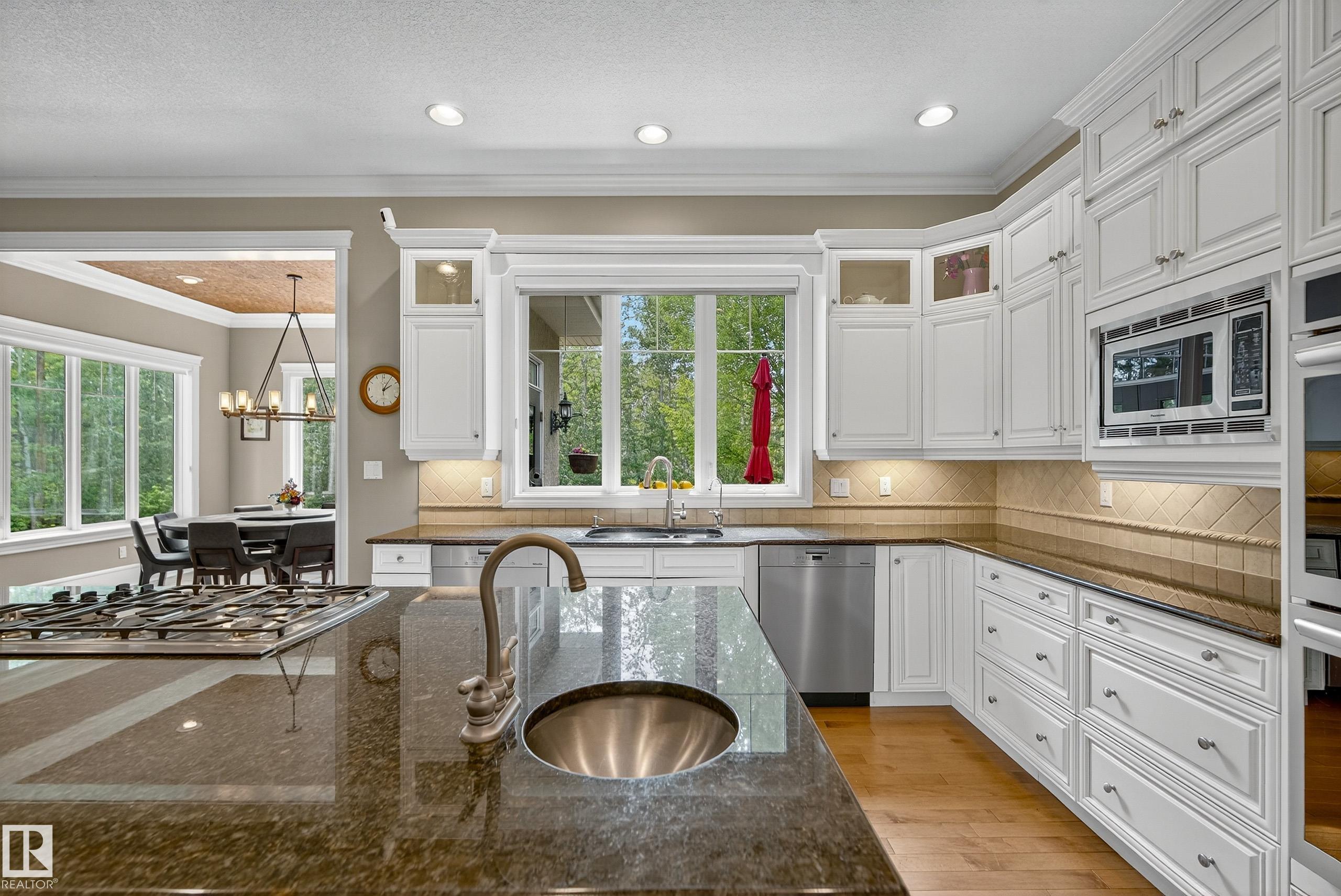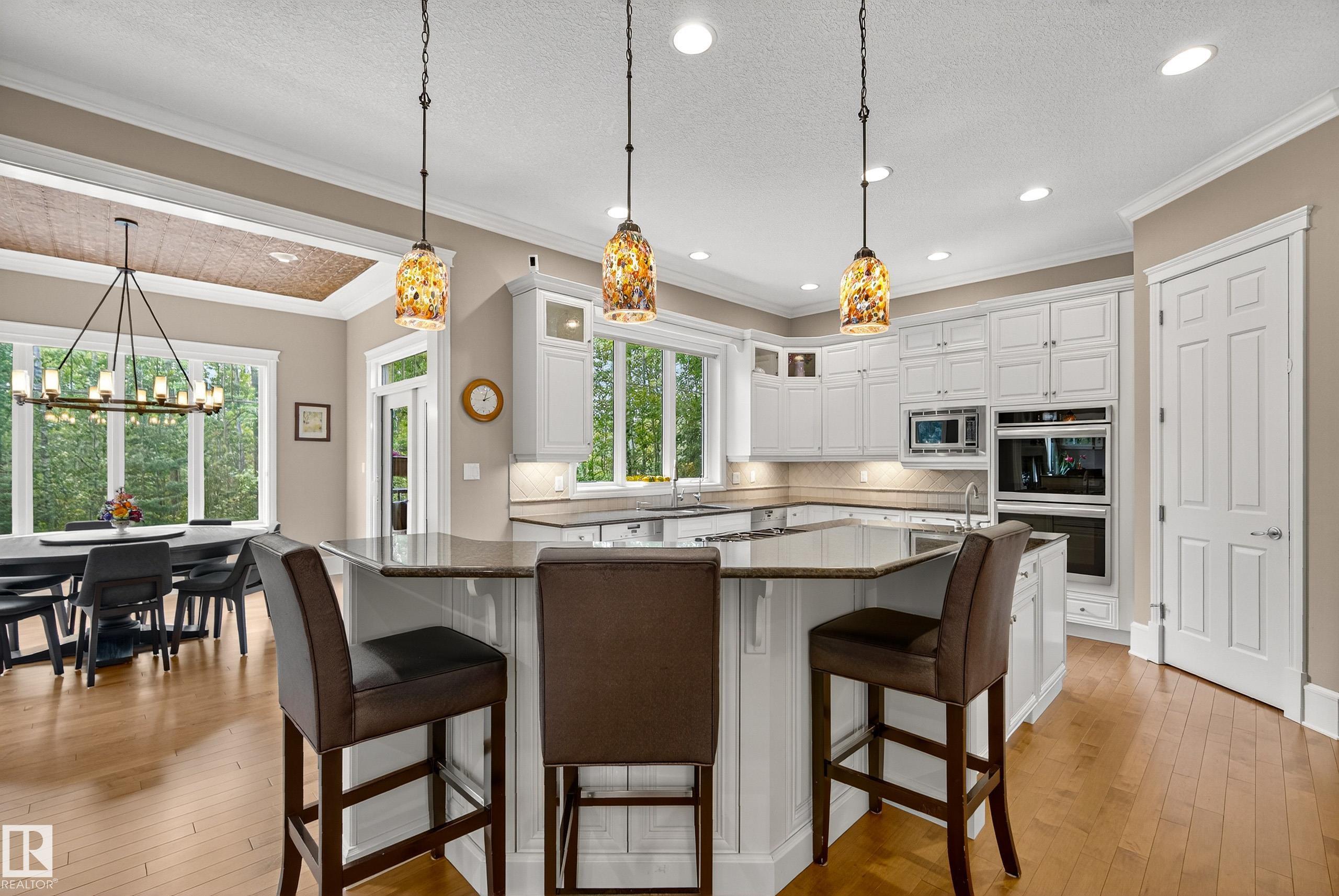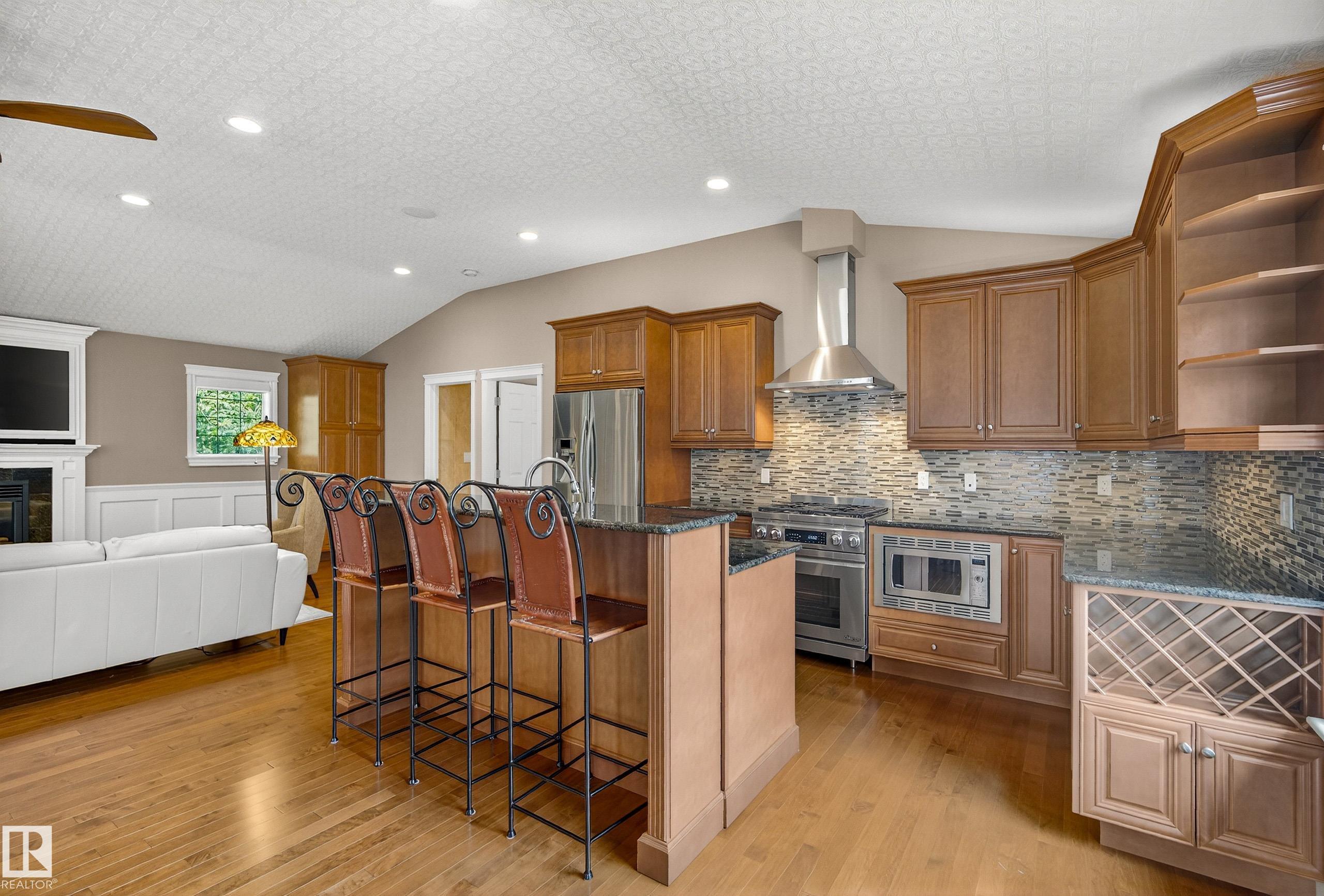 This timeless family residence radiates warmth & quality craftsmanship. Set on 2 private acres in a cul-de-sac, walking distance to Sherwood Park Natural Area and Deermound Dog Park. With 4200+ SqFt of finished space over 3 levels, this home blends elegance with functionality. Upstairs offers 4 spacious bedrooms, each with its own ensuite. The main floor features 2 wood-burning fireplaces and a chef?s kitchen with granite counters, fridge & fridge drawers, double wall ovens, 2 dishwashers, & w/i pantry. The walkout basement is built for entertaining with a bar, rec room, theatre, & gym. A fully equipped 1400 SqFt carriage suite is ideal for guests, nanny, or multigenerational living. Extras include AC, central vac, b/i speakers, Hunter Douglas coverings, in-floor heating, cold storage, gas BBQ hookups, RV parking with 30-amp service, aggregate driveway, playhouse, and dog wash. Garages fit 5 vehicles & include a full shop. Minutes to Edmonton and Sherwood Park. Welcome to luxury living in Waterton Estates