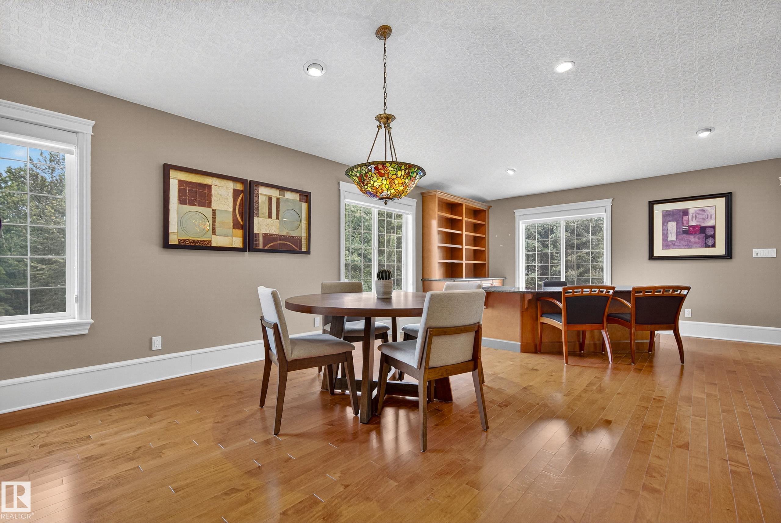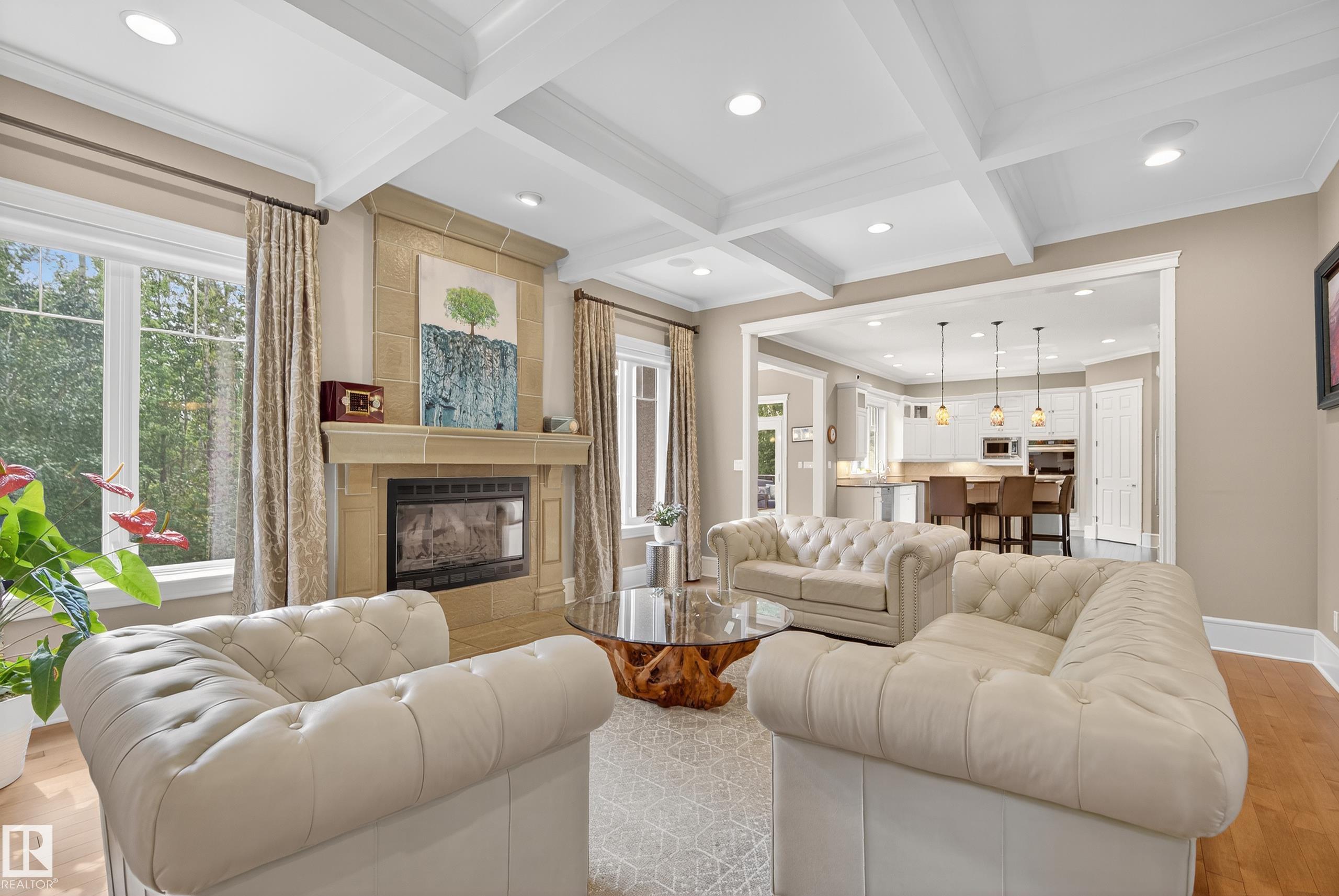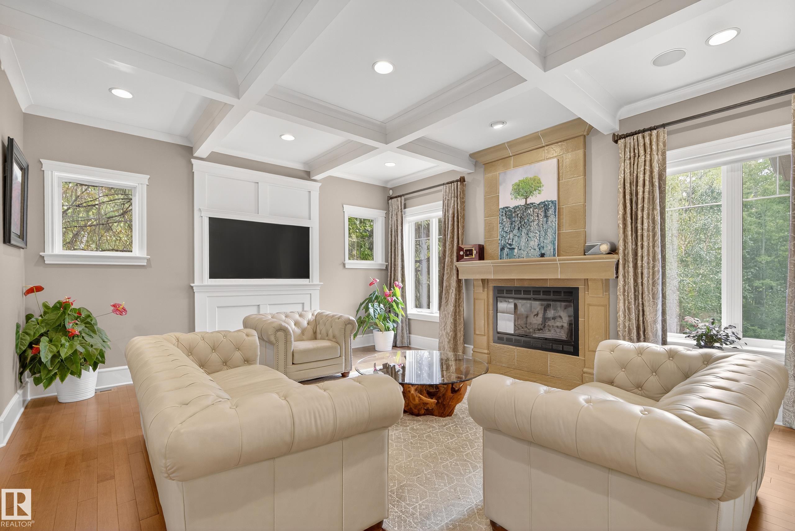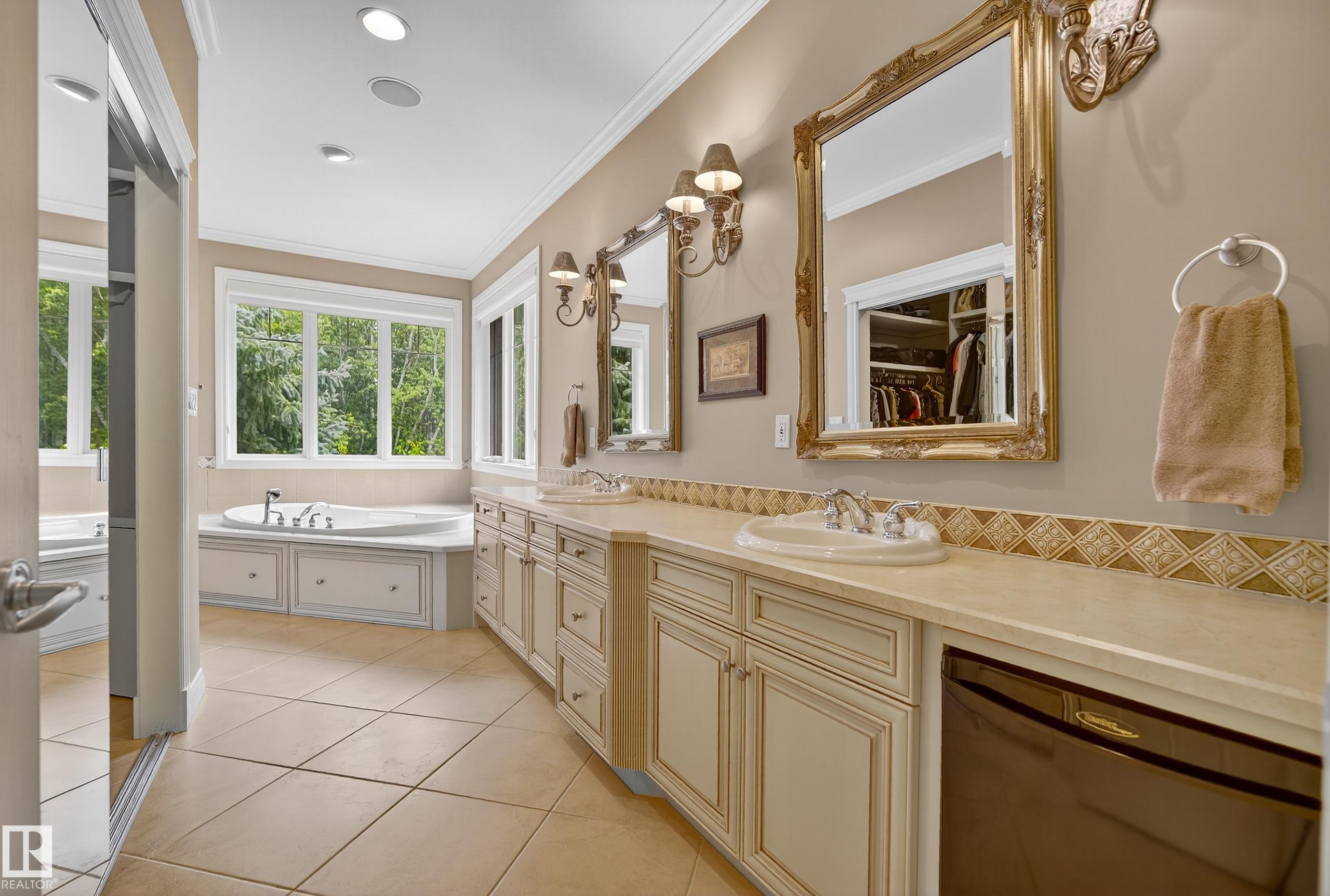 This timeless family residence radiates warmth & quality craftsmanship. Set on 2 private acres in a cul-de-sac, walking distance to Sherwood Park Natural Area and Deermound Dog Park. With 4200+ SqFt of finished space over 3 levels, this home blends elegance with functionality. Upstairs offers 4 spacious bedrooms, each with its own ensuite. The main floor features 2 wood-burning fireplaces and a chef?s kitchen with granite counters, fridge & fridge drawers, double wall ovens, 2 dishwashers, & w/i pantry. The walkout basement is built for entertaining with a bar, rec room, theatre, & gym. A fully equipped 1400 SqFt carriage suite is ideal for guests, nanny, or multigenerational living. Extras include AC, central vac, b/i speakers, Hunter Douglas coverings, in-floor heating, cold storage, gas BBQ hookups, RV parking with 30-amp service, aggregate driveway, playhouse, and dog wash. Garages fit 5 vehicles & include a full shop. Minutes to Edmonton and Sherwood Park. Welcome to luxury living in Waterton Estates