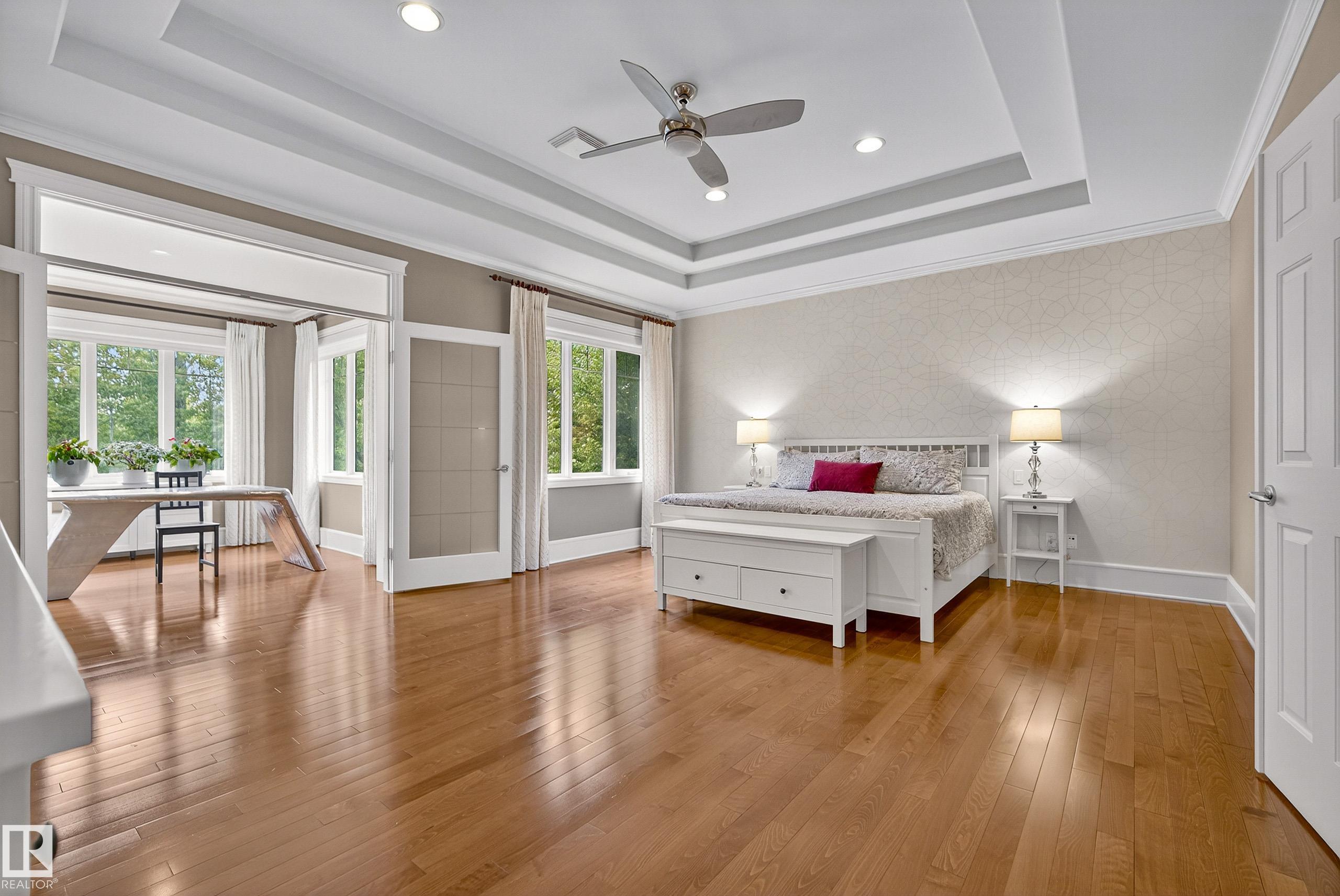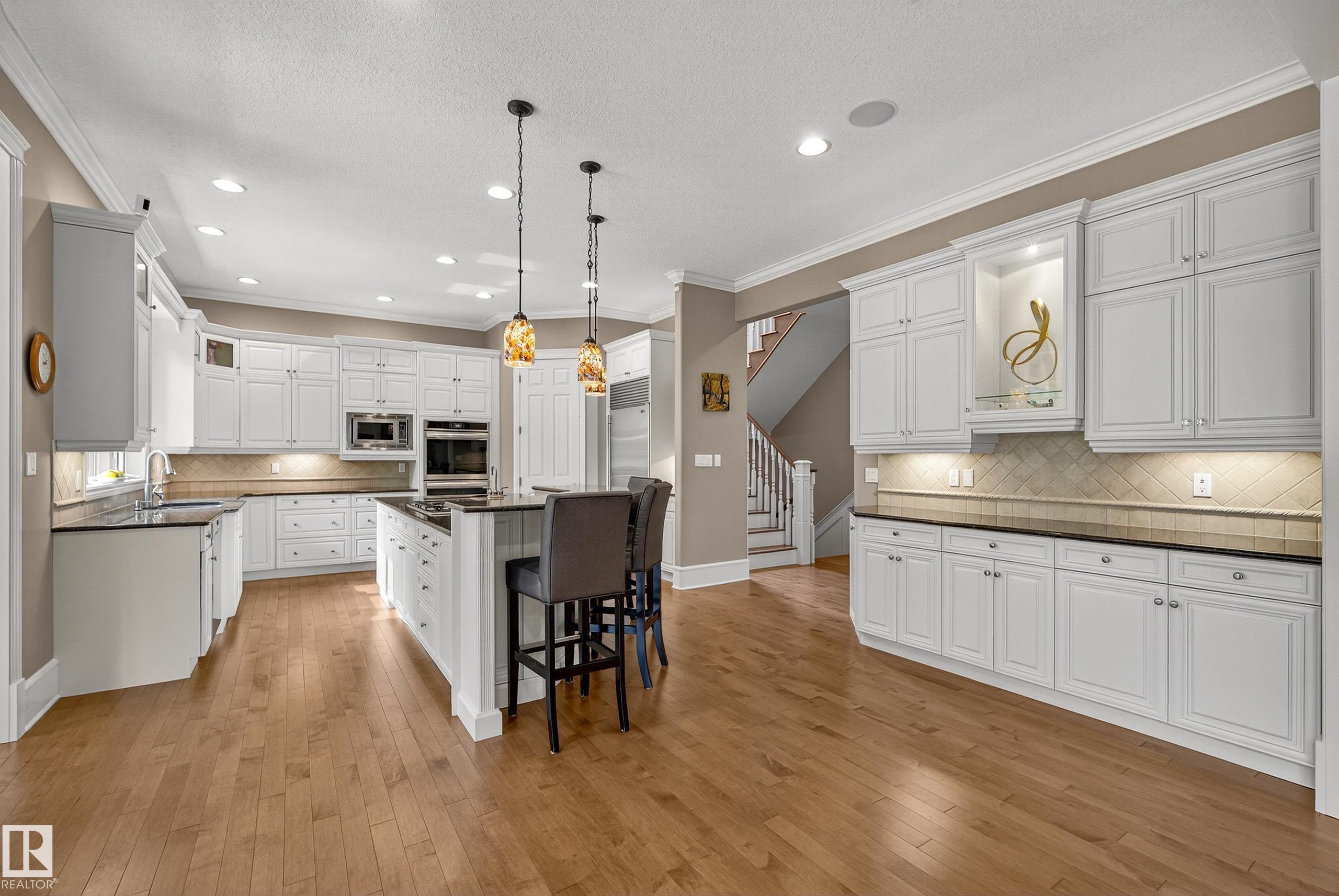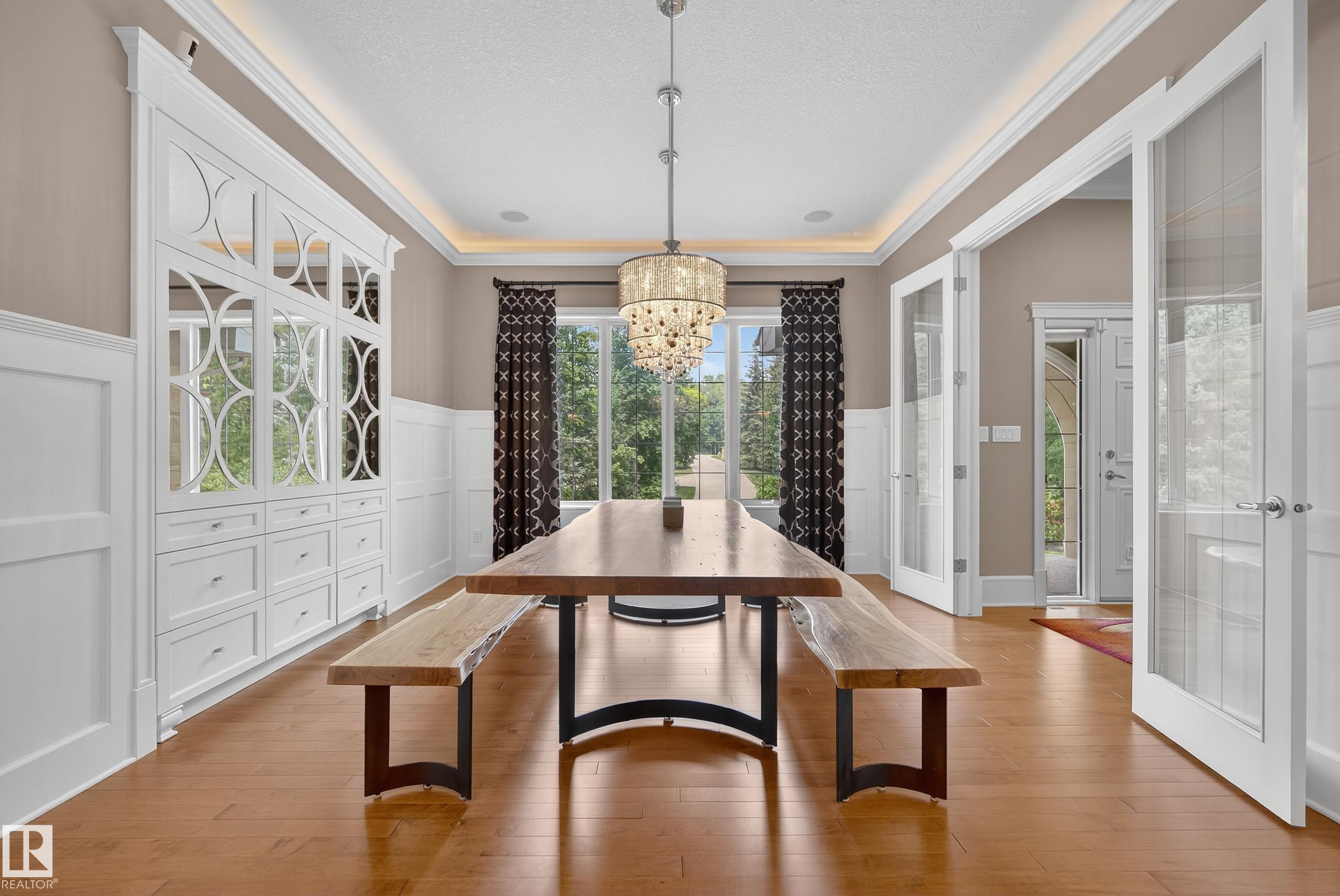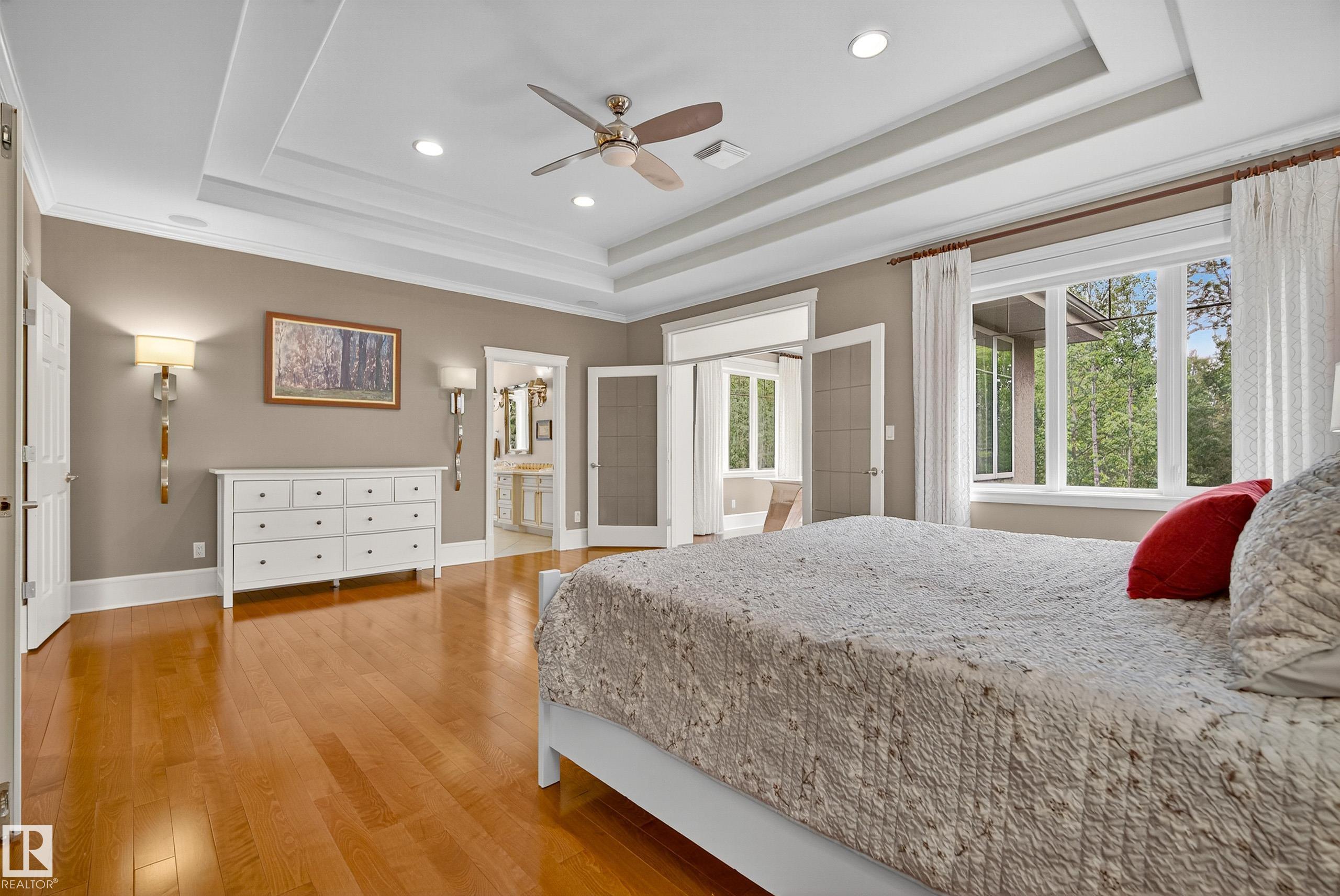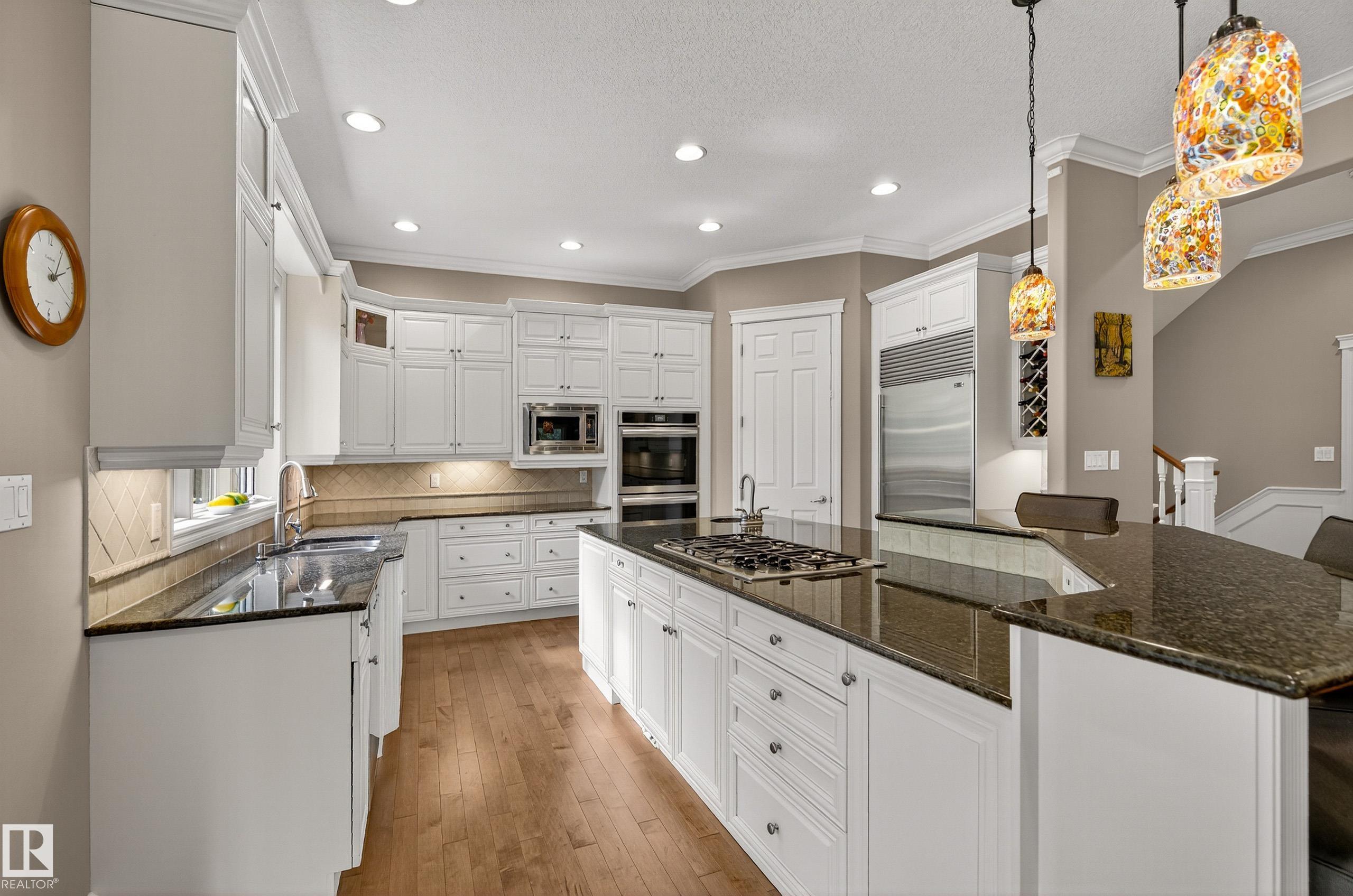 This timeless family residence radiates warmth & quality craftsmanship. Set on 2 private acres in a cul-de-sac, walking distance to Sherwood Park Natural Area and Deermound Dog Park. With 4200+ SqFt of finished space over 3 levels, this home blends elegance with functionality. Upstairs offers 4 spacious bedrooms, each with its own ensuite. The main floor features 2 wood-burning fireplaces and a chef?s kitchen with granite counters, fridge & fridge drawers, double wall ovens, 2 dishwashers, & w/i pantry. The walkout basement is built for entertaining with a bar, rec room, theatre, & gym. A fully equipped 1400 SqFt carriage suite is ideal for guests, nanny, or multigenerational living. Extras include AC, central vac, b/i speakers, Hunter Douglas coverings, in-floor heating, cold storage, gas BBQ hookups, RV parking with 30-amp service, aggregate driveway, playhouse, and dog wash. Garages fit 5 vehicles & include a full shop. Minutes to Edmonton and Sherwood Park. Welcome to luxury living in Waterton Estates