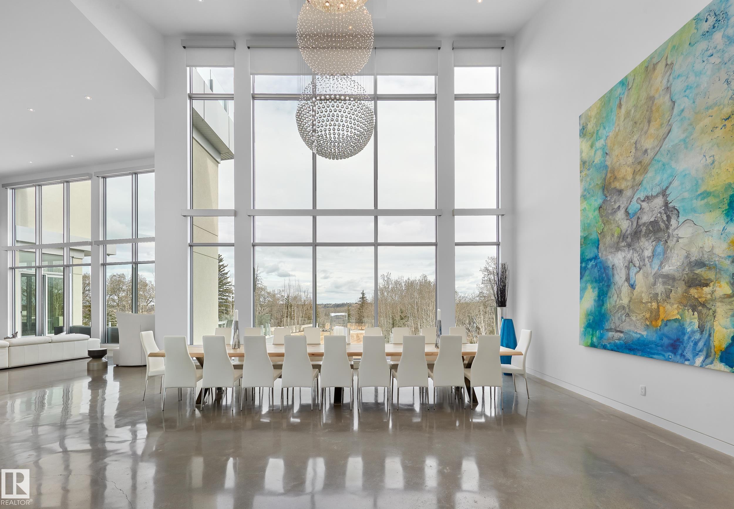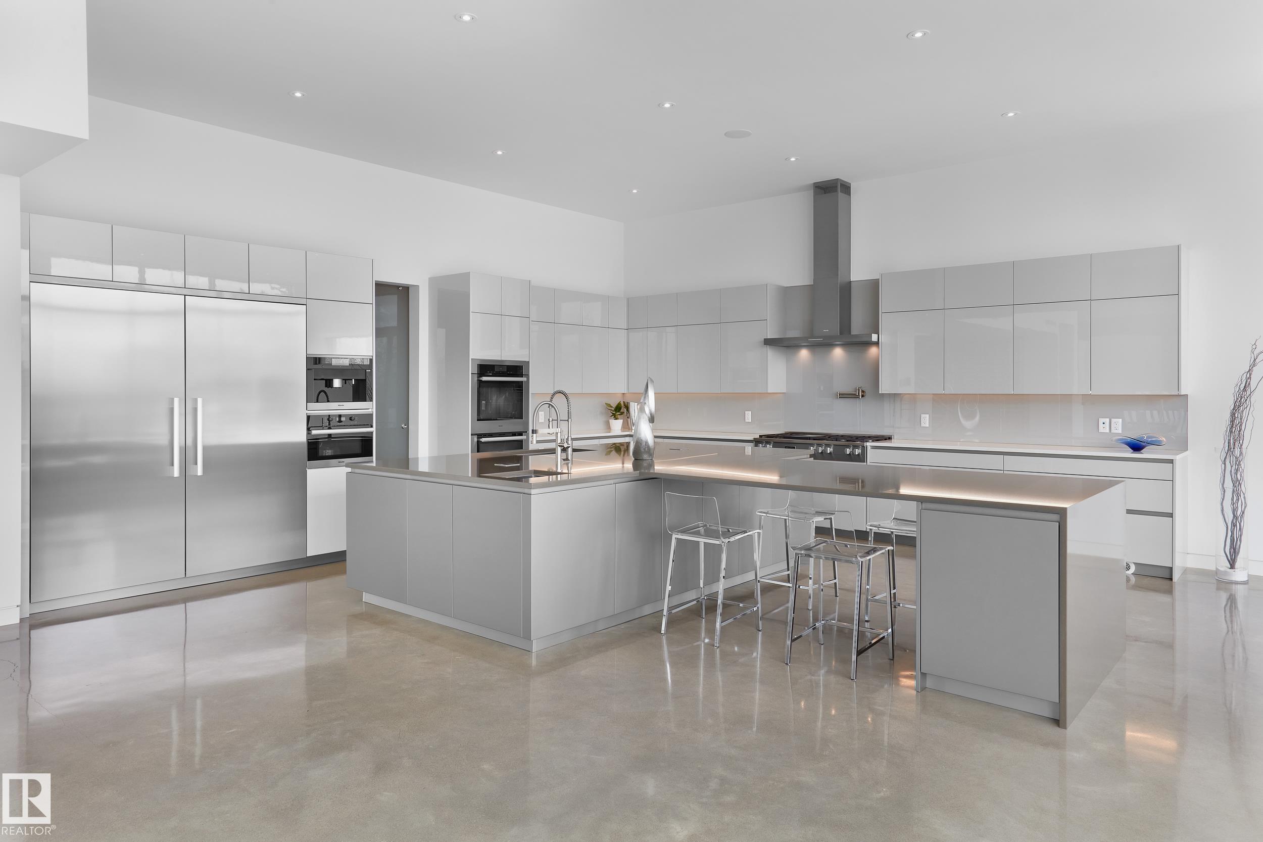 Nestled on a 60,041sqft lot (1.4acres) - a natural setting & attention to detail provide the perfect fusion between structural strength & architectural form in this Modern architecture home with 360-degree views of the river valley & downtown. Encompassing 7818sqft plus a finished 3997sqft walkout basement (11,814sqft) - 5 beds, 6 baths & 9 car-garage. This home is constructed with superior commercial grade craftsmanship & captured the graceful perceptions of the beauty of nature & contemporary elegance with this home's clean lines & organized living. The interiors are characterized by their understated beauty & fluid interpretation of space. The main floor has bountiful natural light streaming in from the numerous windows throughout with 20ft ceilings, modern elegance & style, gourmet kitchen, butler kitchen, multi-level wine room & views of the river valley from every level. From the outside meticulously landscaped 1.4 acres to the construction & the interior ? this home is a true entertainer's dream!