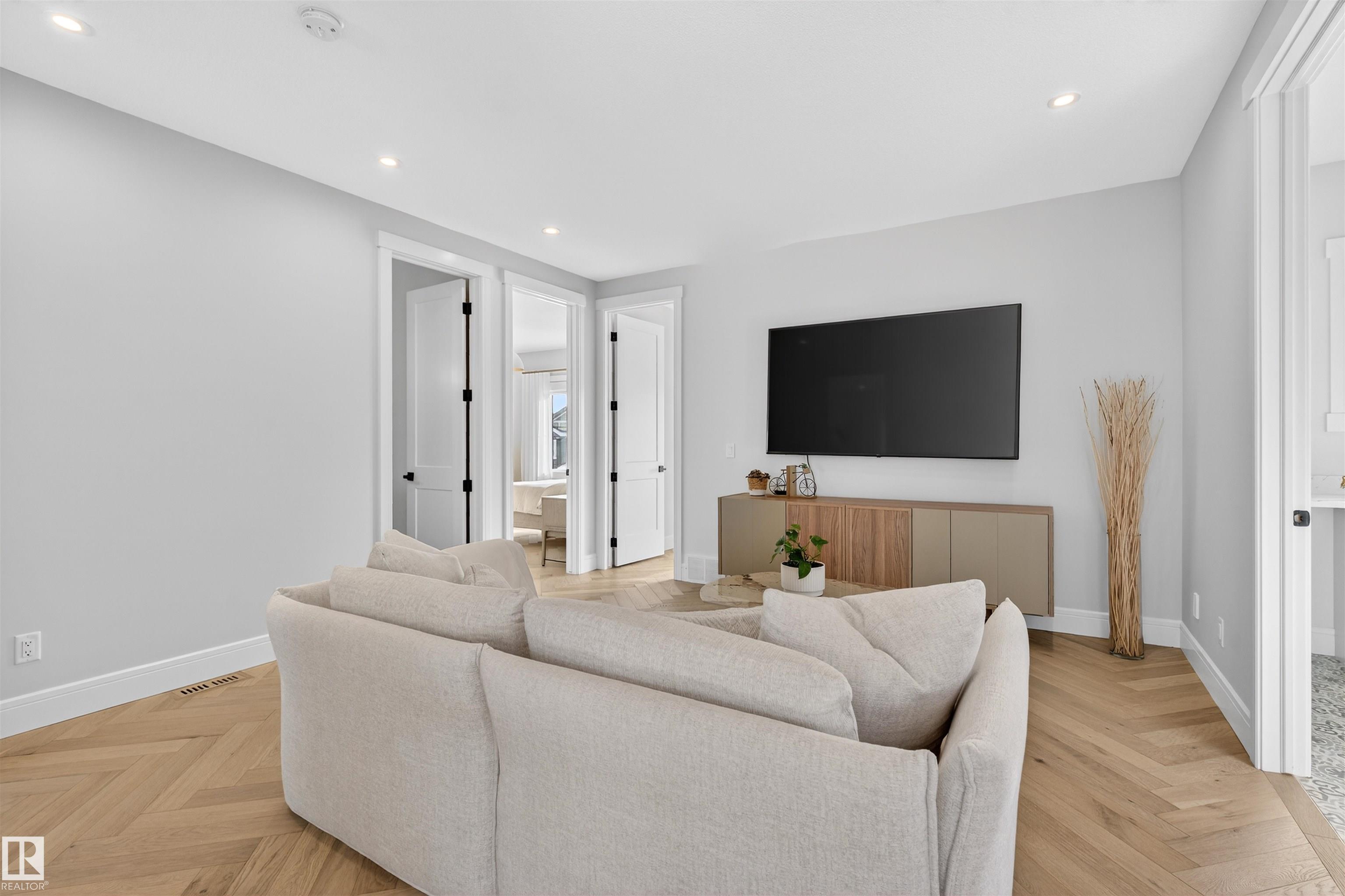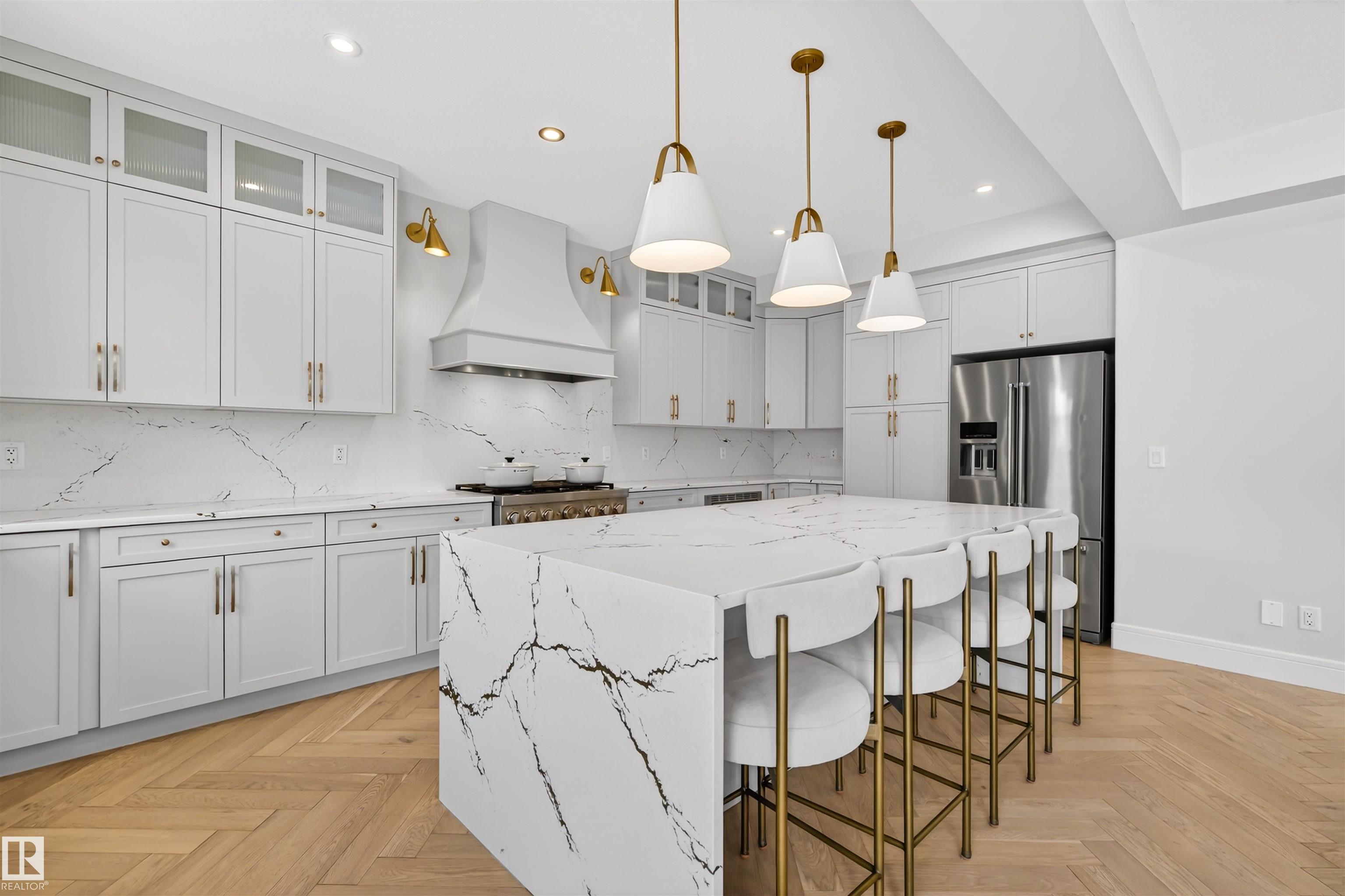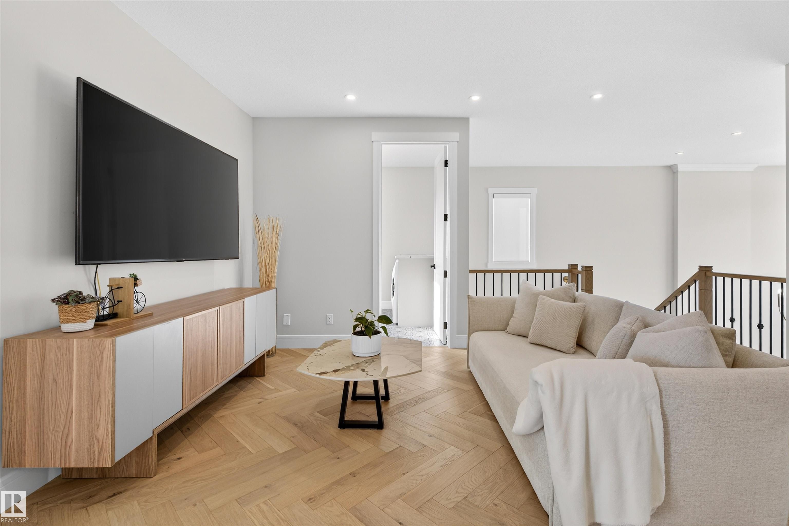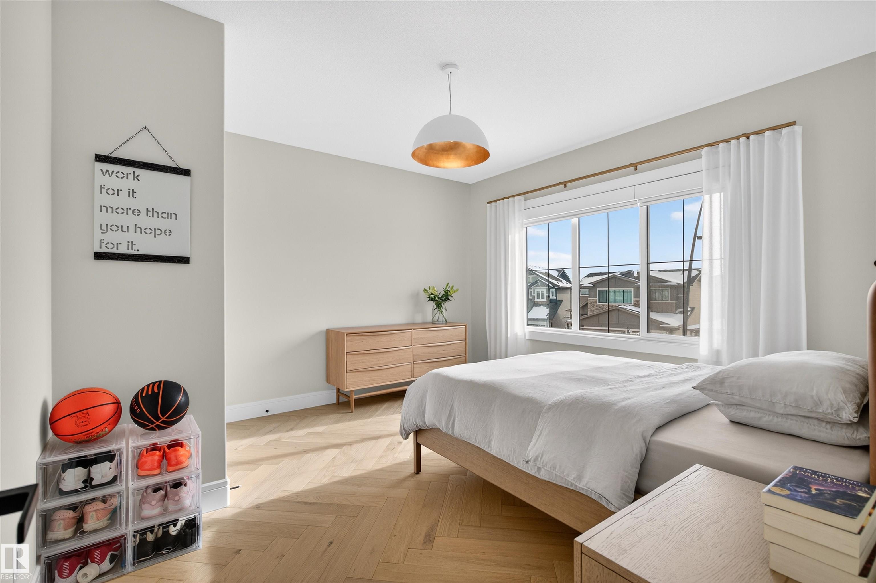 This elegant custom built home blends timeless architecture with refined, minimalist design. Perfectly positioned along an extensive walking trail & forested green space offers both privacy & a serene natural backdrop. All details curated for comfort & family living. Stunning, spacious kitchen showcases a luxury leather-touch Cambria Quartz Island, gas range & hidden butler?s pantry with direct access to the garage. The open-concept main floor is graced by an open stairwell leading to the upper loft, creating a sense of light & architectural interest. Upgrades include Hardwood Flooring, Oversized Windows, Custom floor-to-ceiling Drapes, main-floor office & large upper laundry room. With 4 bdrms, 3.5 baths, A/C &Triple garage. This Home is perfect for all family sizes. The Fully finished basement has a stylish wet bar, recreation room, an extra bedroom & a 3-piece bathroom?perfect for guests & entertaining. Walking distance to park, playground & transit, this home blends luxury, comfort, and convenience.