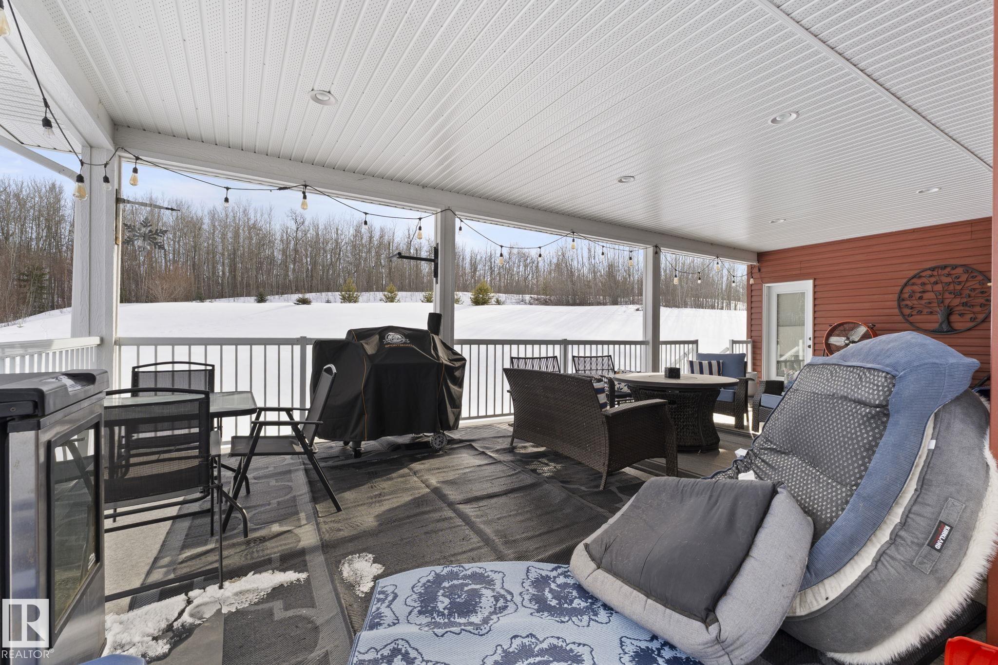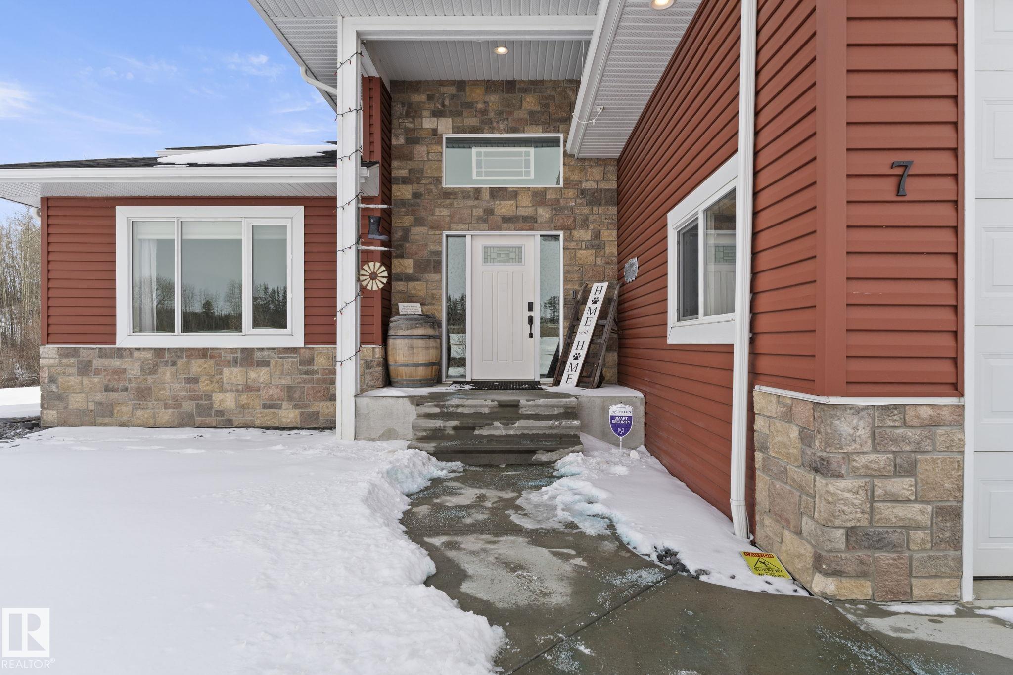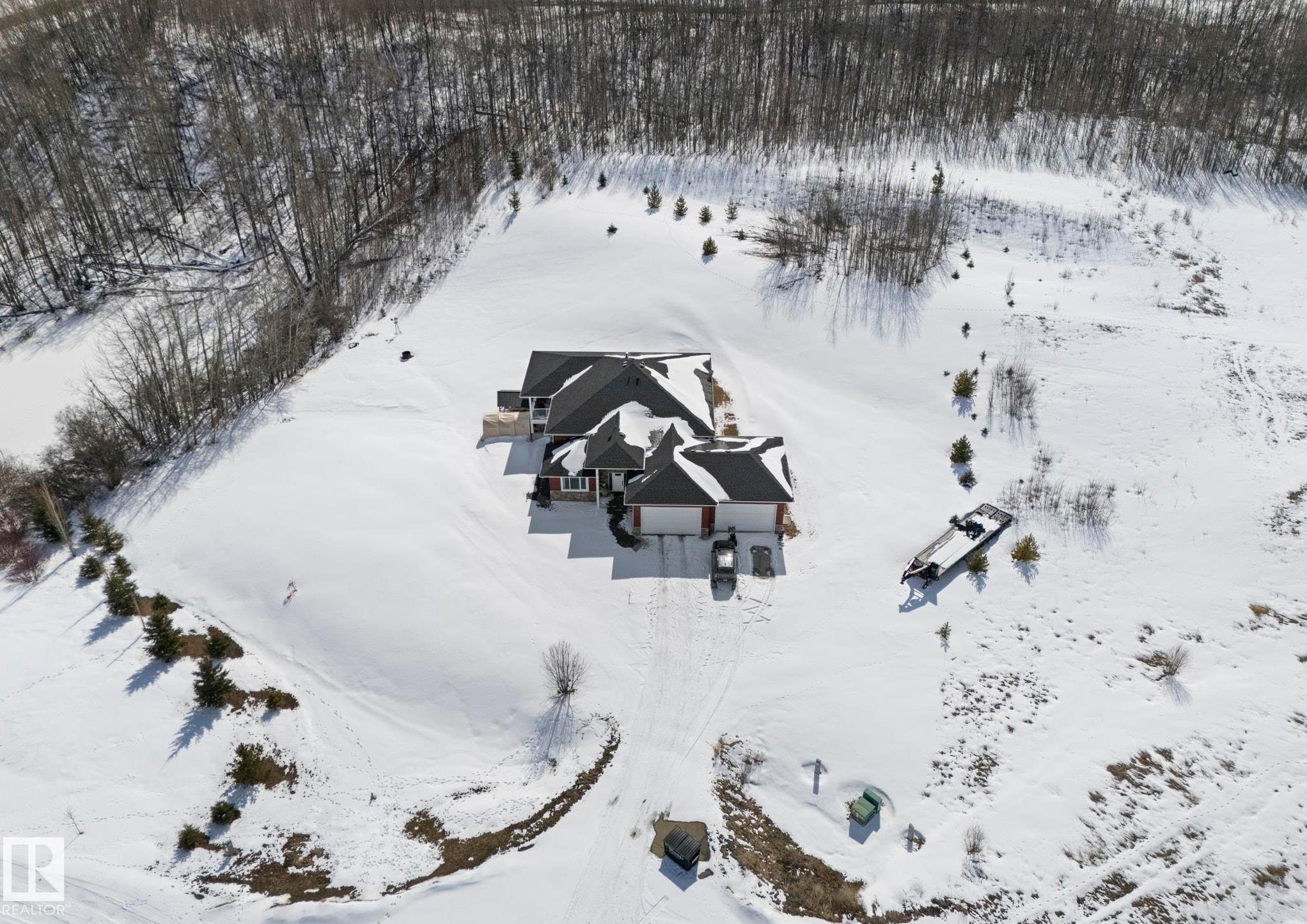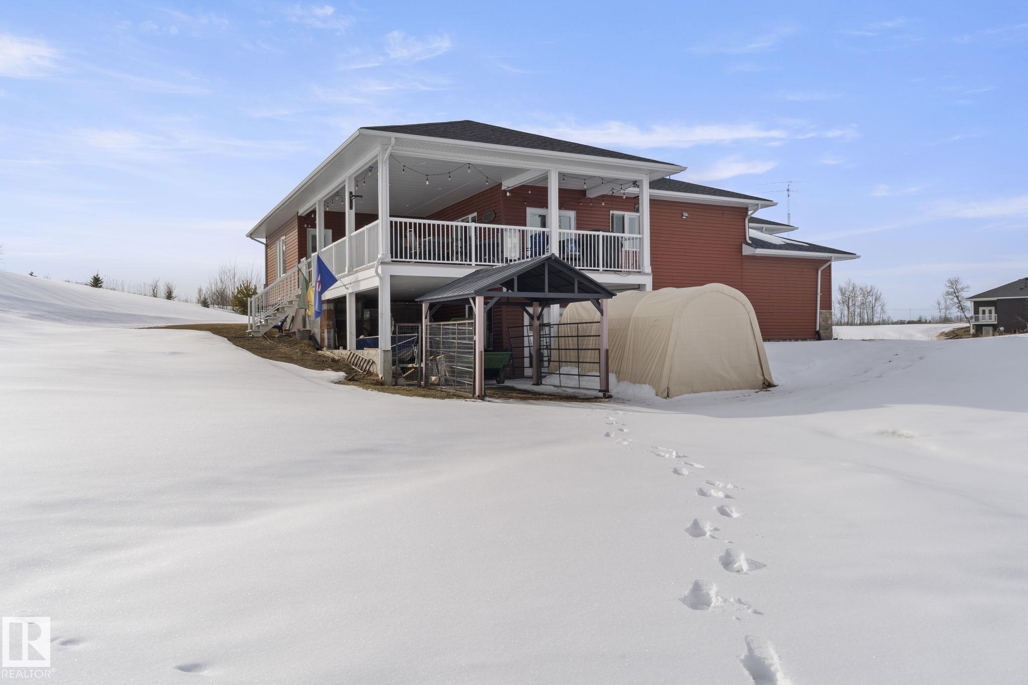 Looking to have it all? You?ve just found it! 2.28 acres backing trees, 6 bedrooms, 3 full baths, over 3685 SqFt of total living space, 4-car garage, walkout basement & only 6 km?s to Stony Plain. Relax in this turn-key home built in 2015 & make memories with all it has to offer. Step inside & feel right at home in the bright, open-concept main floor - perfect for gathering & entertaining. The kitchen is the heart of it all, featuring a large island w/ eating bar, corner pantry & beautiful cabinets flowing seamlessly into the dining & living areas w/ beautiful views in every direction. The king-sizedPrimary Bdrm is your private retreat w/ walk-in closet & 4 pce ensuite. Main floor laundry rm w/sink adds everyday ease. The walkout basement is ready to be the popular hangout spot, huge rec room & wet bar area w/ beverage fridge & dishwasher. A 4-car garage means room for all your vehicles, toys & more. Unwind on the massive wrap around covered upper deck. Enjoy the peace of this serene private oasis.