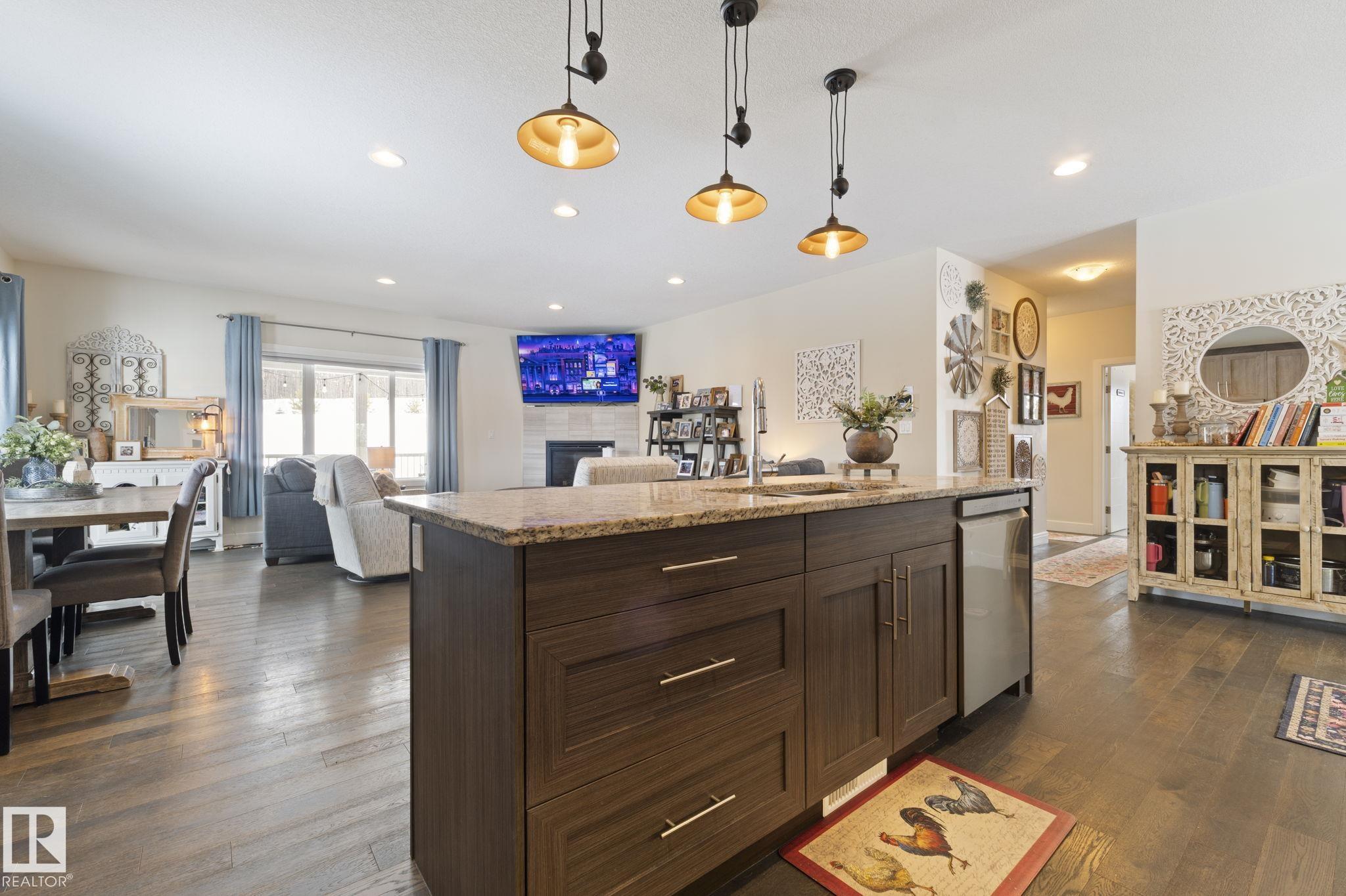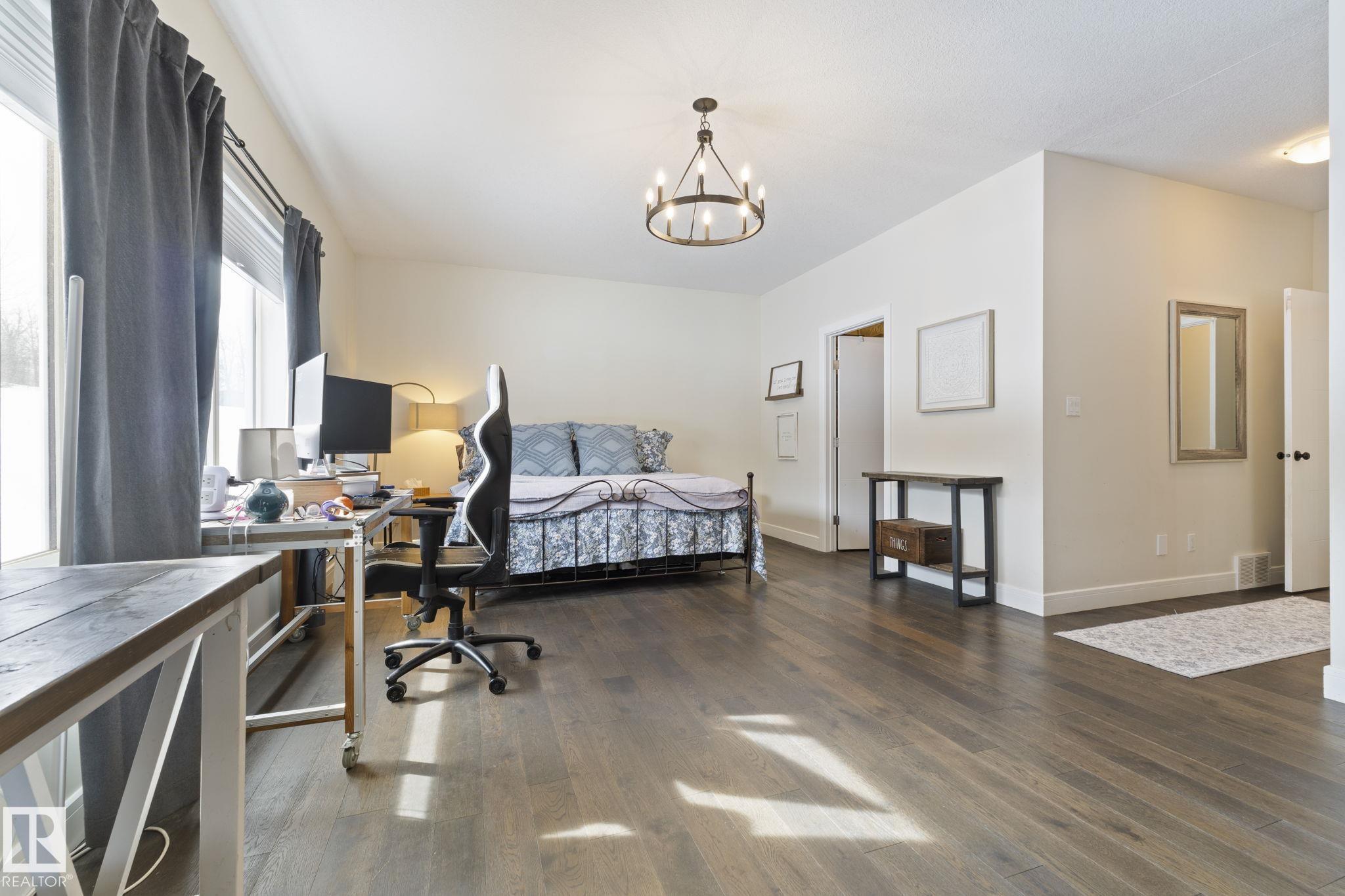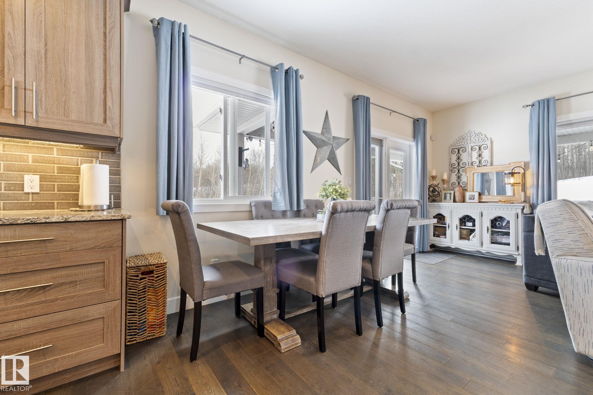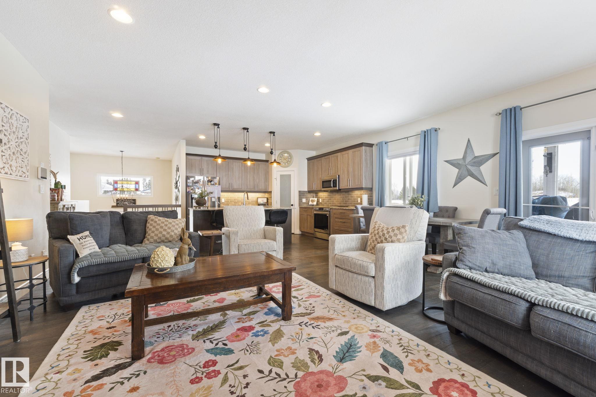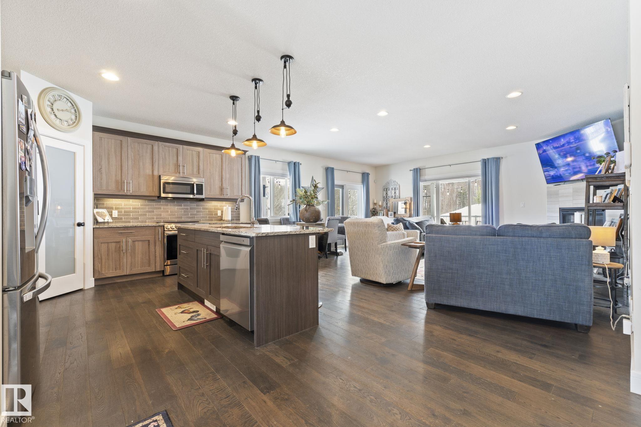 Looking to have it all? You?ve just found it! 2.28 acres backing trees, 6 bedrooms, 3 full baths, over 3685 SqFt of total living space, 4-car garage, walkout basement & only 6 km?s to Stony Plain. Relax in this turn-key home built in 2015 & make memories with all it has to offer. Step inside & feel right at home in the bright, open-concept main floor - perfect for gathering & entertaining. The kitchen is the heart of it all, featuring a large island w/ eating bar, corner pantry & beautiful cabinets flowing seamlessly into the dining & living areas w/ beautiful views in every direction. The king-sizedPrimary Bdrm is your private retreat w/ walk-in closet & 4 pce ensuite. Main floor laundry rm w/sink adds everyday ease. The walkout basement is ready to be the popular hangout spot, huge rec room & wet bar area w/ beverage fridge & dishwasher. A 4-car garage means room for all your vehicles, toys & more. Unwind on the massive wrap around covered upper deck. Enjoy the peace of this serene private oasis.