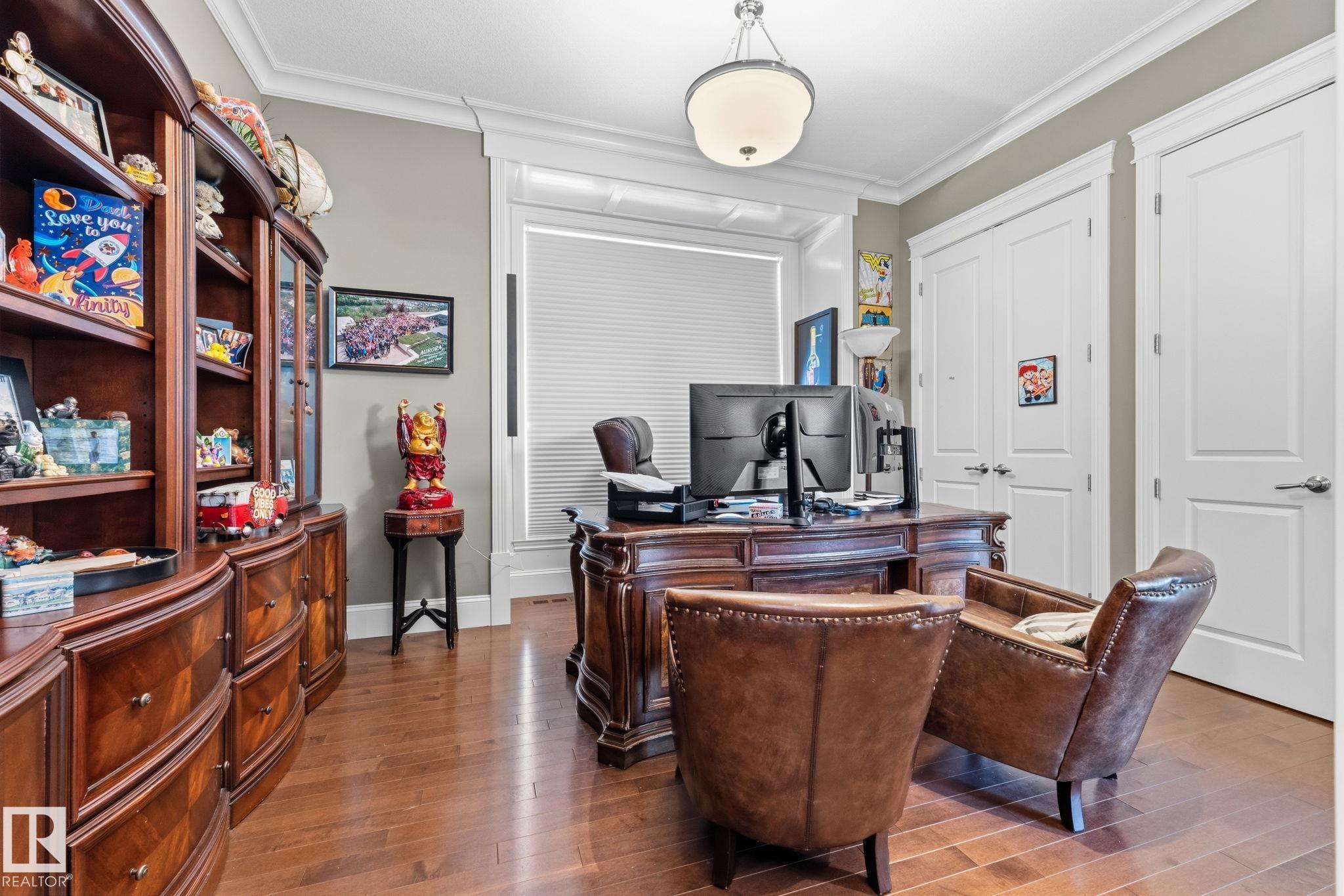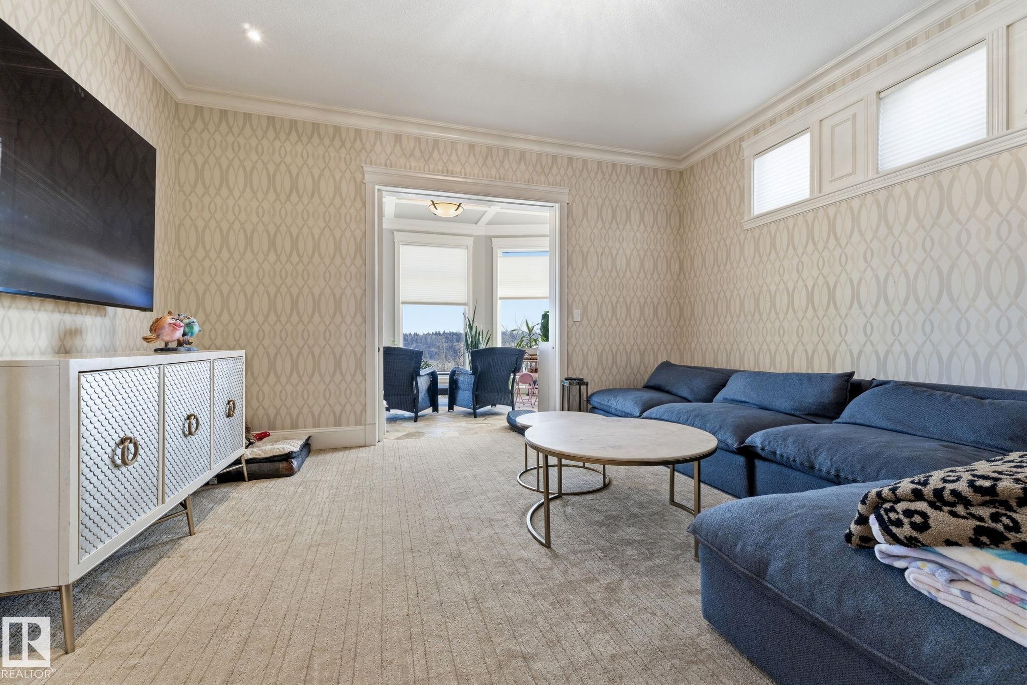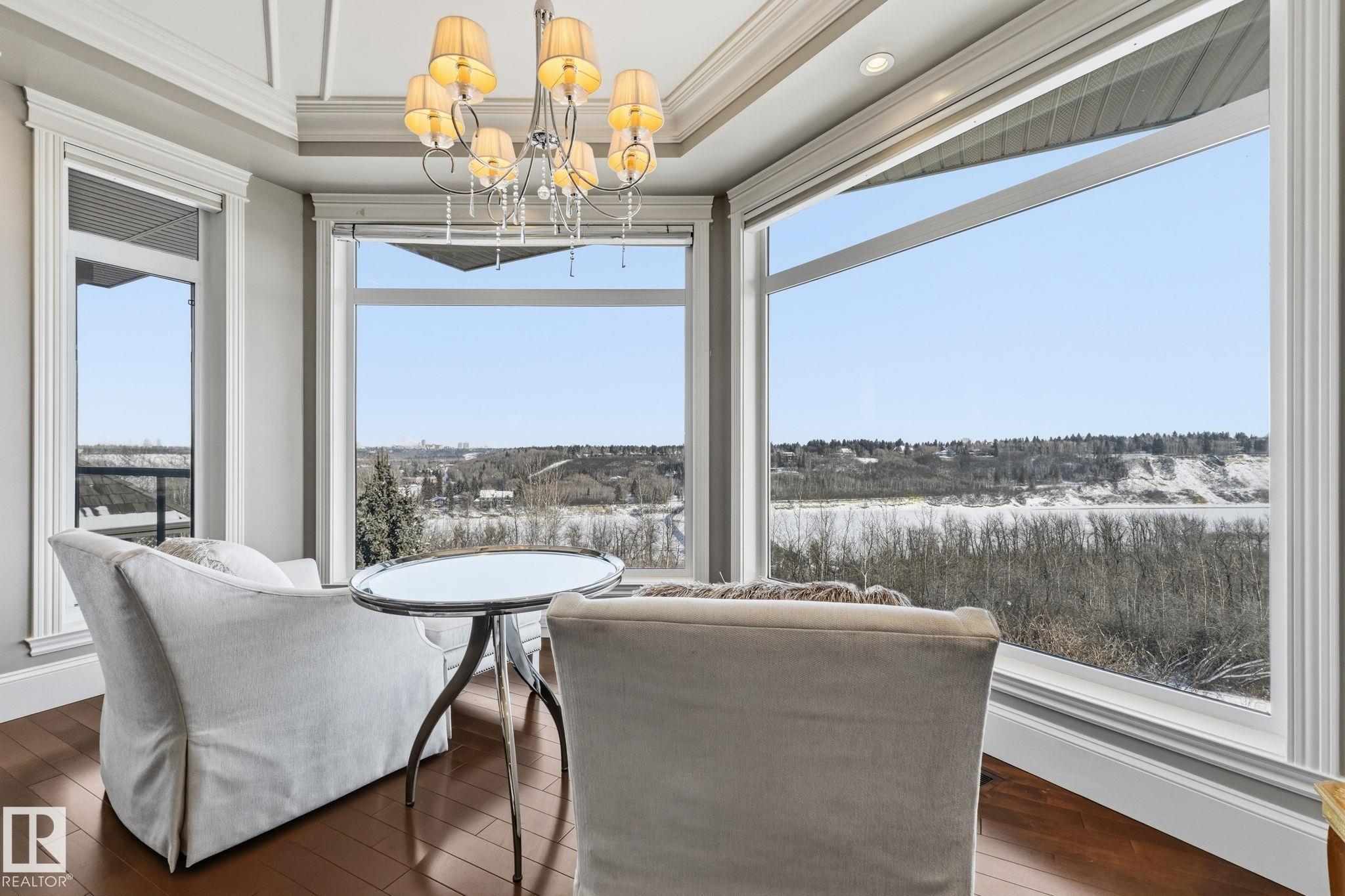 Introducing an extraordinary river valley estate, offering 7,670 sq ft of exquisitely crafted living space & river valley views like no other. With 7 bdrms & 9 baths, this home delivers uncompromising space, privacy & refined style for family & guests. The main floor impresses w/soaring ceilings, a palatial staircase & luxurious touches at every turn. A chef's dream kitchen is a focal point & heart of the home. Upstairs, be captivated by 4 lavish bedrooms, each complete w/its own ensuite & walk-in closet, while the primary suite serves as a private retreat featuring a spa-inspired ensuite & an expansive custom closet. The walkout basement w/9 ft. ceilings is designed for elevated living, showcasing a sophisticated wine room & bar, a private theatre w/seating for 12 & an exceptional home gym. Set in a serene setting surrounded by natural beauty & just steps from the Edmonton Golf & Country Club & Wolf Willow Ravine, this residence is a true sanctuary defined by elegance, regal scale & unparalleled views.