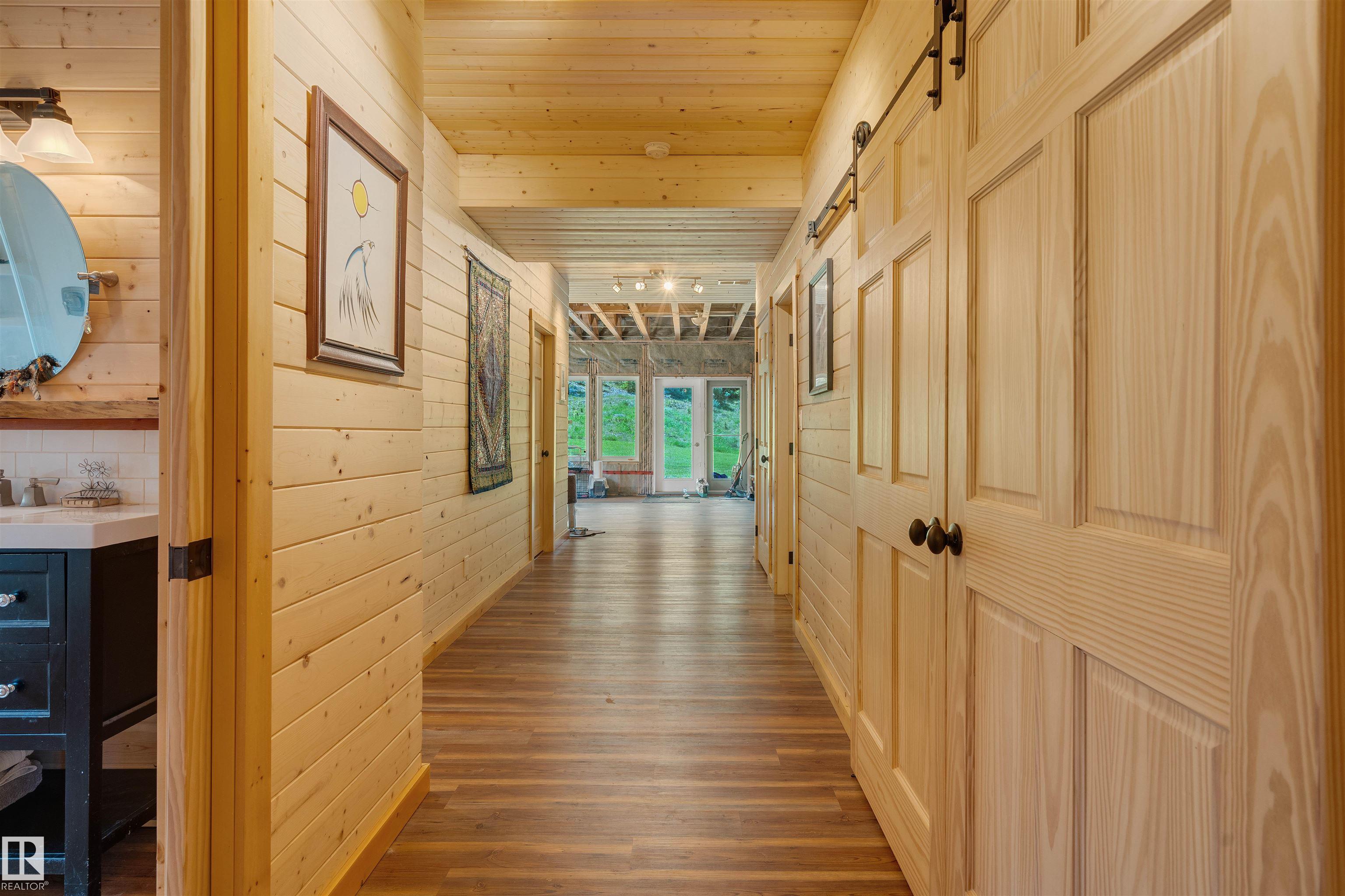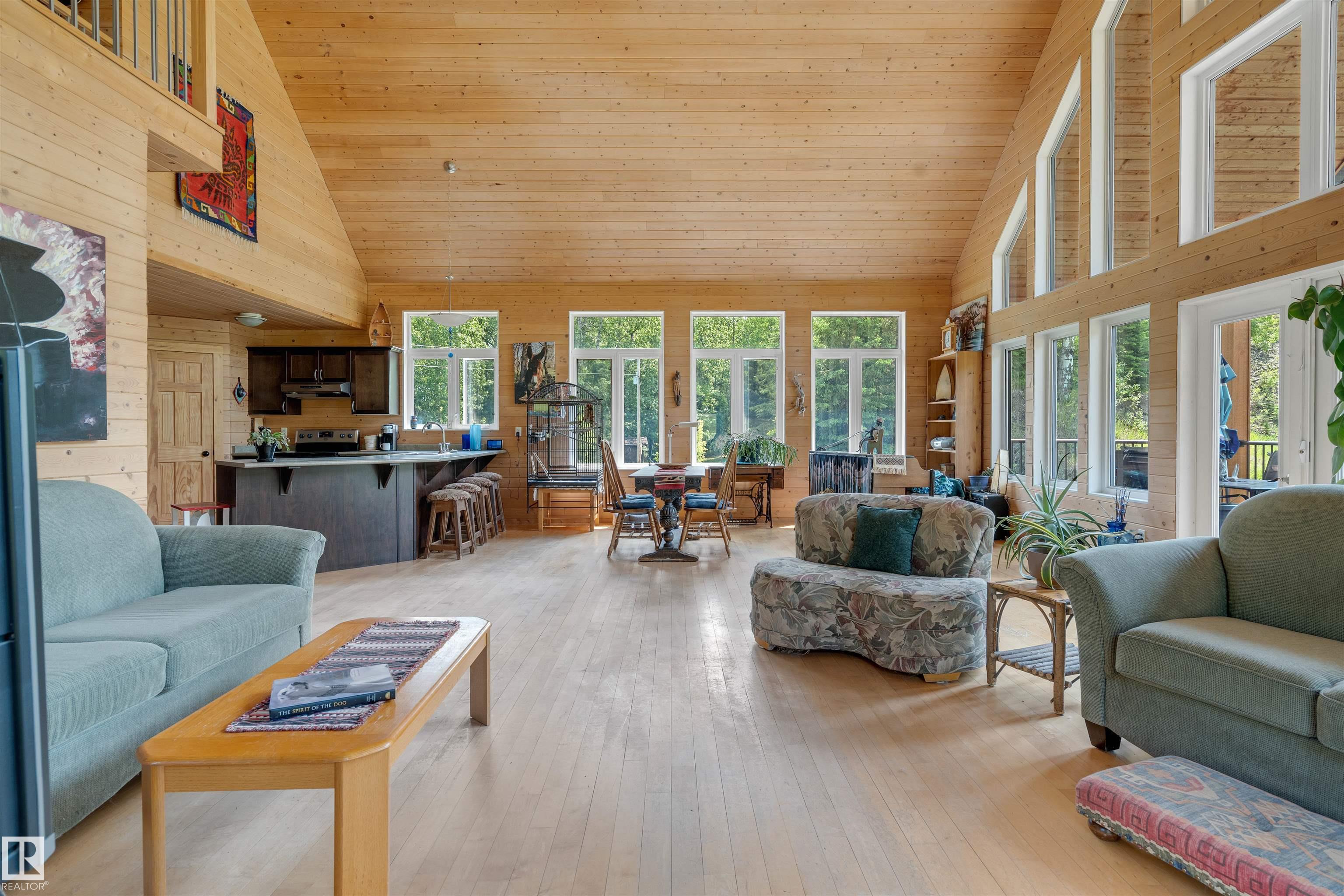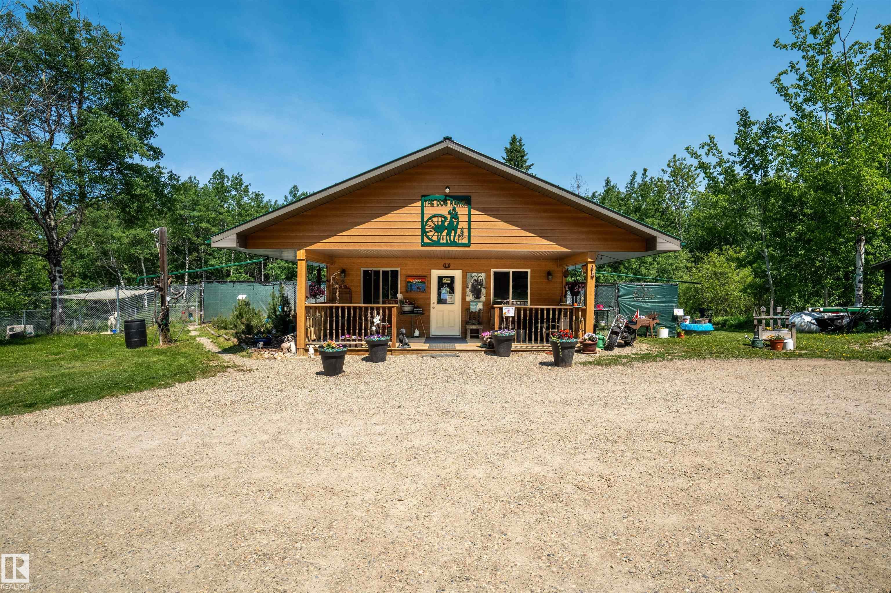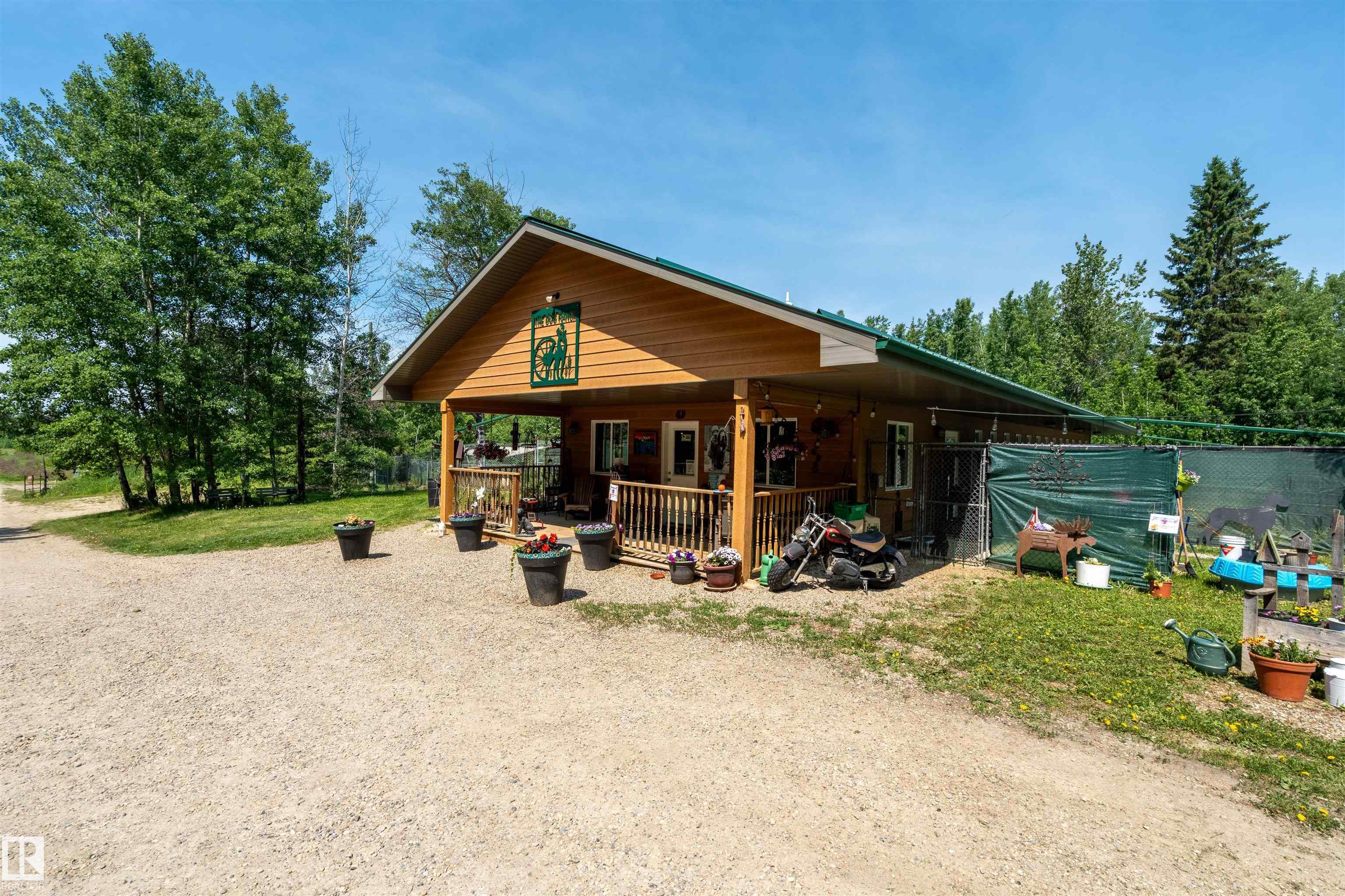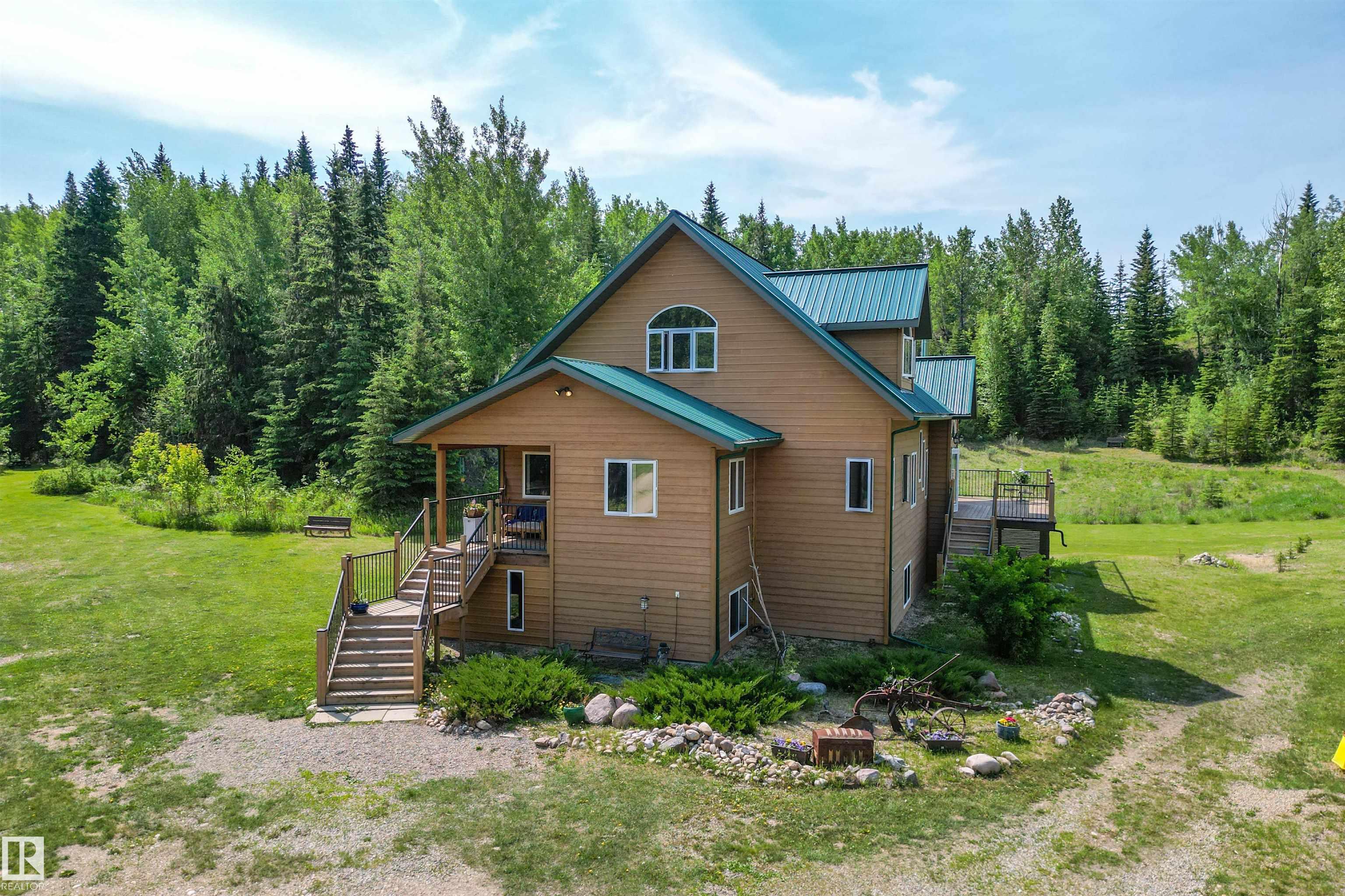 Built to last & stand the test of time, this beautifully designed home located 55 mins from Edmonton is situated on 24 acres of rolling land. This well-designed custom-built home displays superb workmanship & attention to detail. A perfect balance of Cathedral Ceilings creating a sense of grandeur & elegance; Chalet Style Triple Pane Windows fill the home with sunlight & the meticulously built Pine interior adds a sense of warmth & coziness. With just over 3,000 Sqft of Living Space enjoy the Spacious Loft Style Primary Bedroom, or the Library which could double as an Office. Walk or Ski the many Groomed Trails. A portion of the basement has been left for you to complete allowing you to add Bedrooms and/or a Games Room with direct access to the vast Yard. Included is a small Workshop/Woodshed & Profitable year-round 2,000 Sqft Turnkey Kennel Business. Located just off HWY 16, Highway Frontage Land can add potential revenue for advertising signage & some exclusive RV Storage. Explore the possibilities!